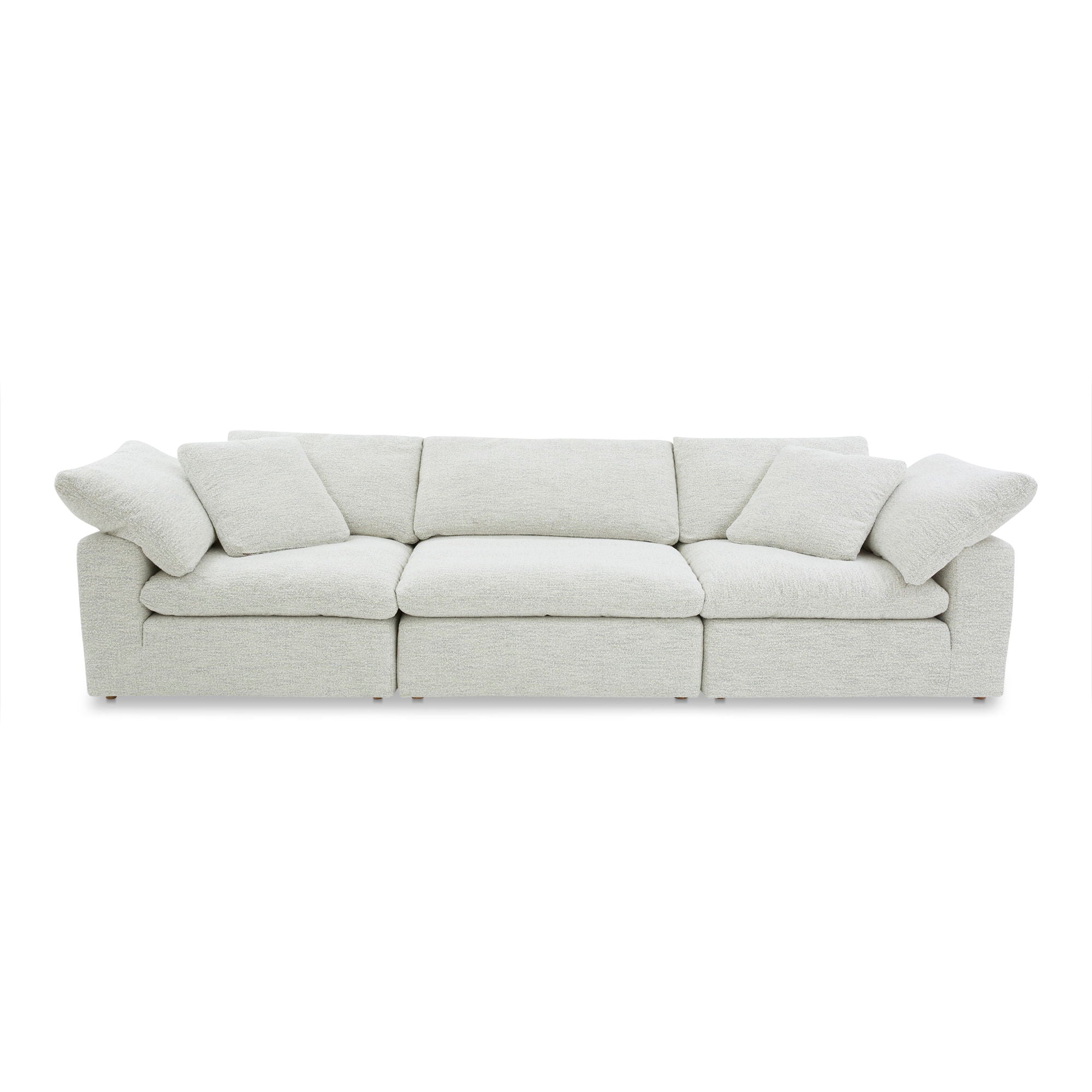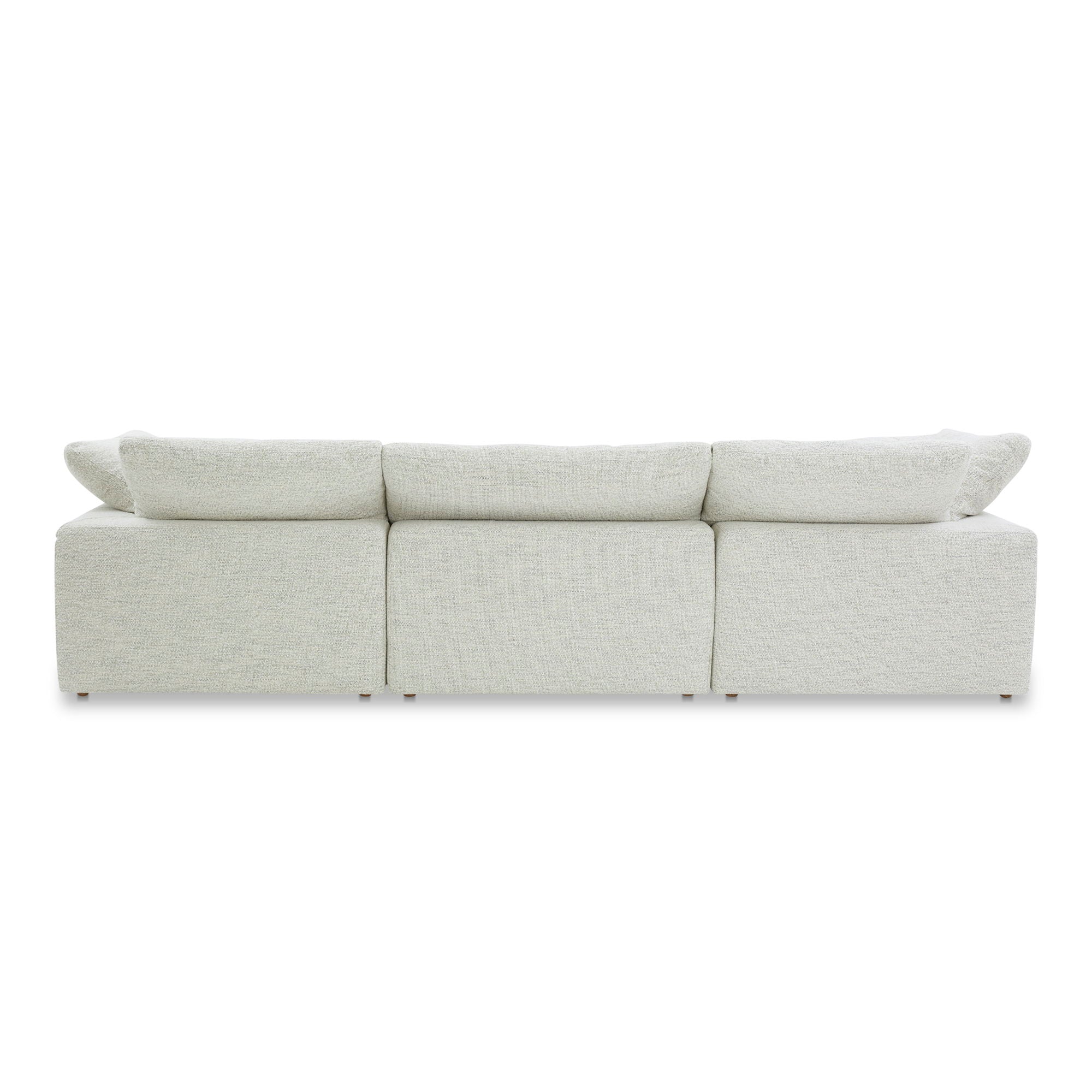 The Clay modular sofa is upholstered with our Performance Technology Fabric, which is moisture-repellent, stain-resistant, and offers barrier protection. Its cushions are filled generously with feather and fiber blend, and channeled and double-wrapped to maximize durability. The top eight inches of cushioning are filled with foam, making it ultra comfortable while being able to withstand the demands of a bustling household.