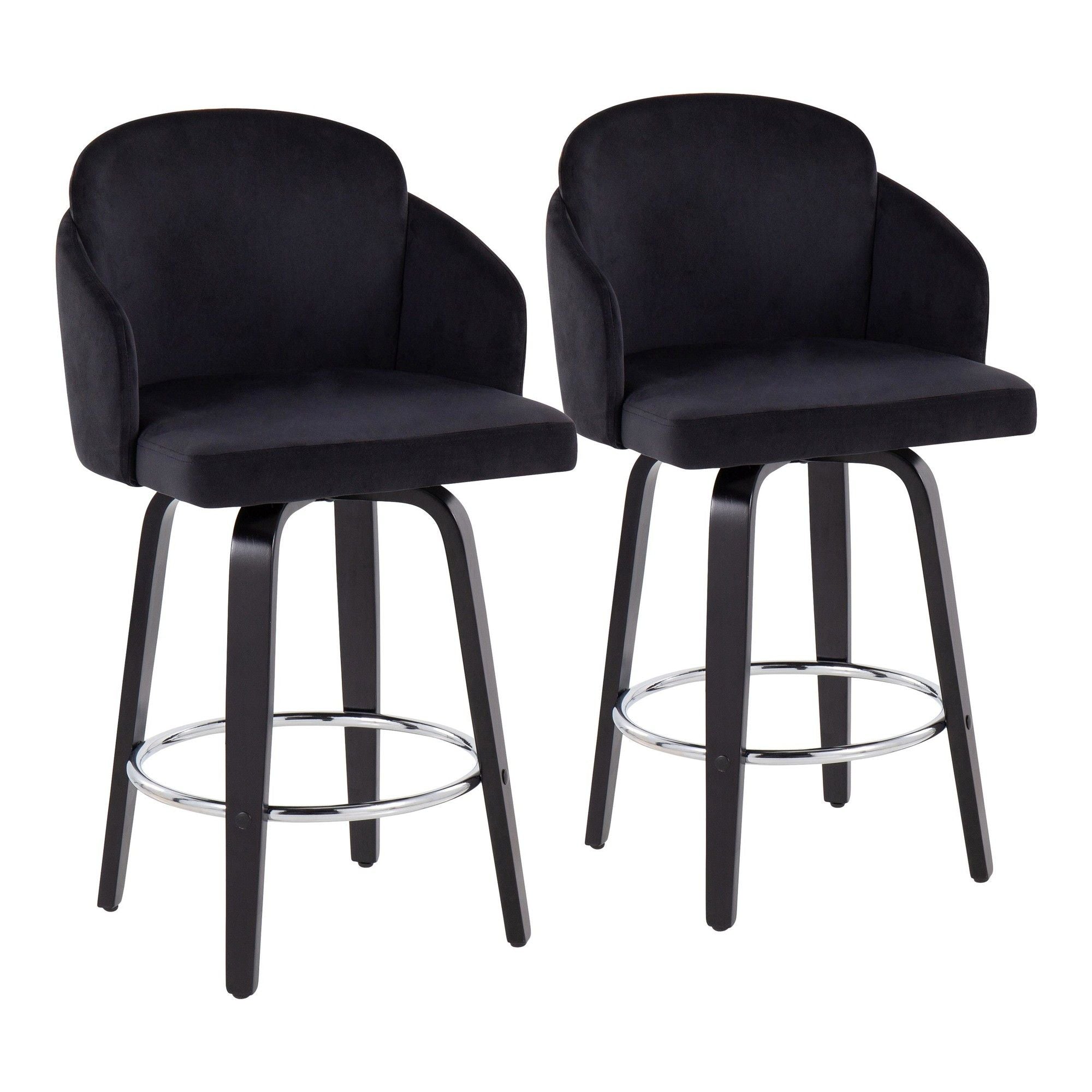 Dahlia - Counter Stool - Black Wood And Black Velvet With Gold Metal Accent And Round Chrome Footrest (Set of 2)