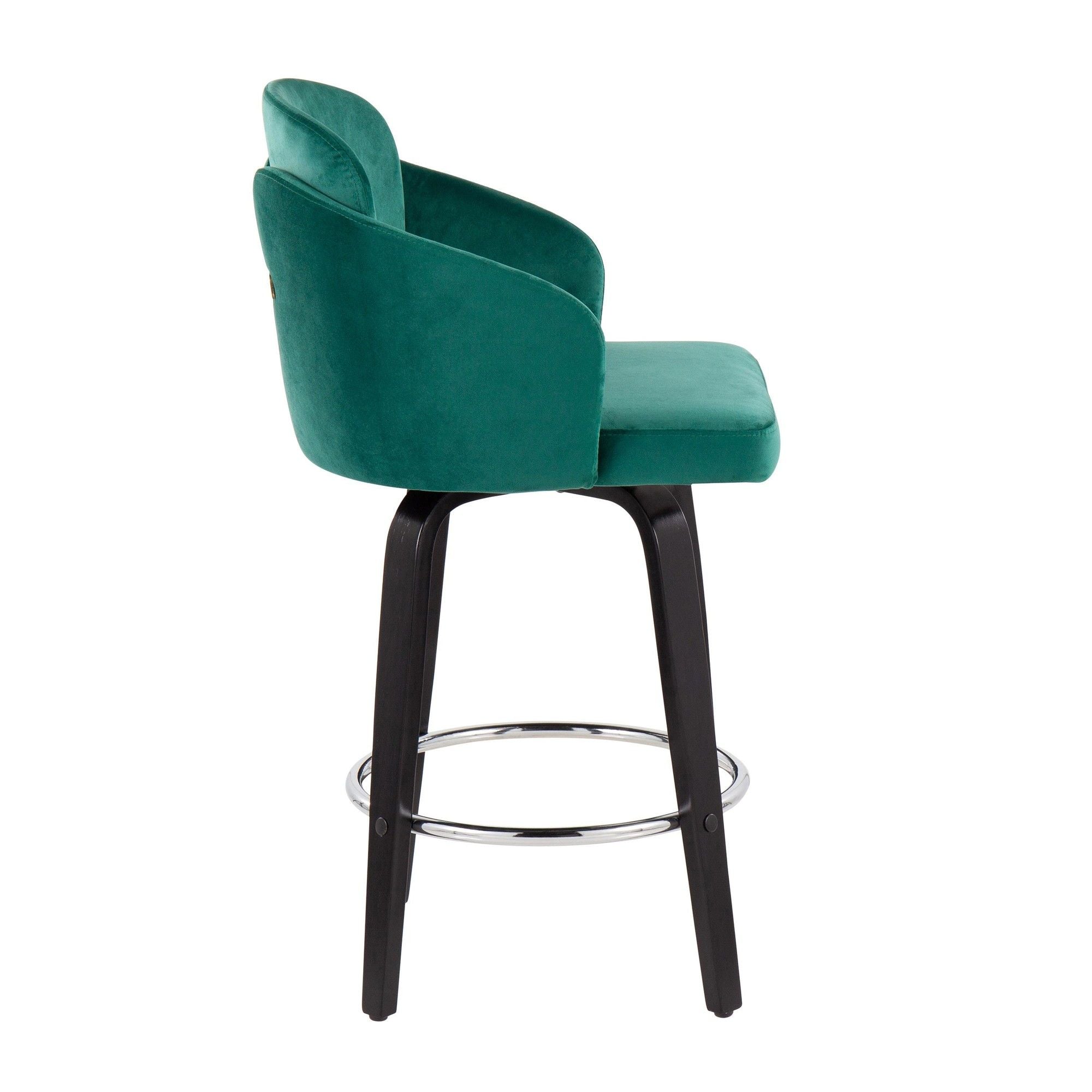 Dahlia - Counter Stool - Black Wood And Green Velvet With Gold Metal Accent And Round Chrome Footrest (Set of 2)