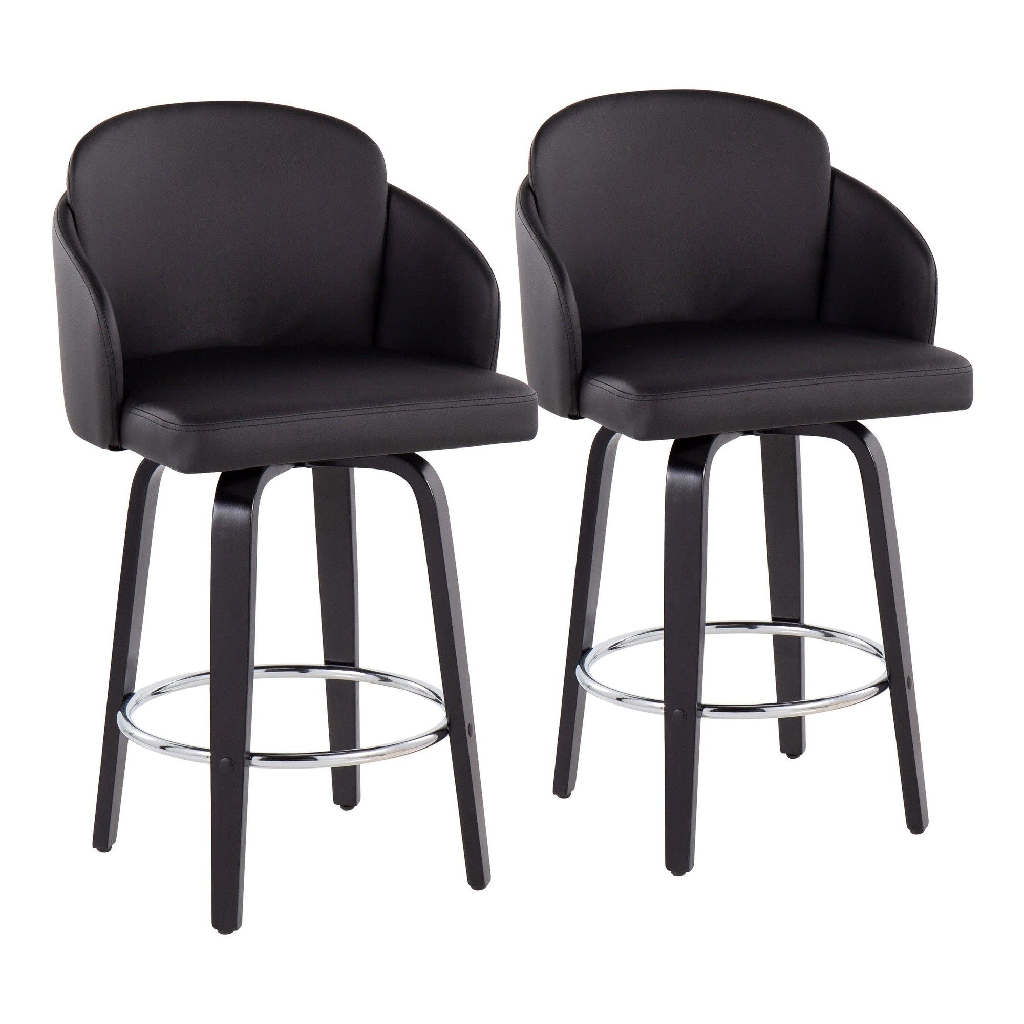 Dahlia - Counter Stool - Black Wood And Black Faux Leather With Round Chrome Footrest (Set of 2)