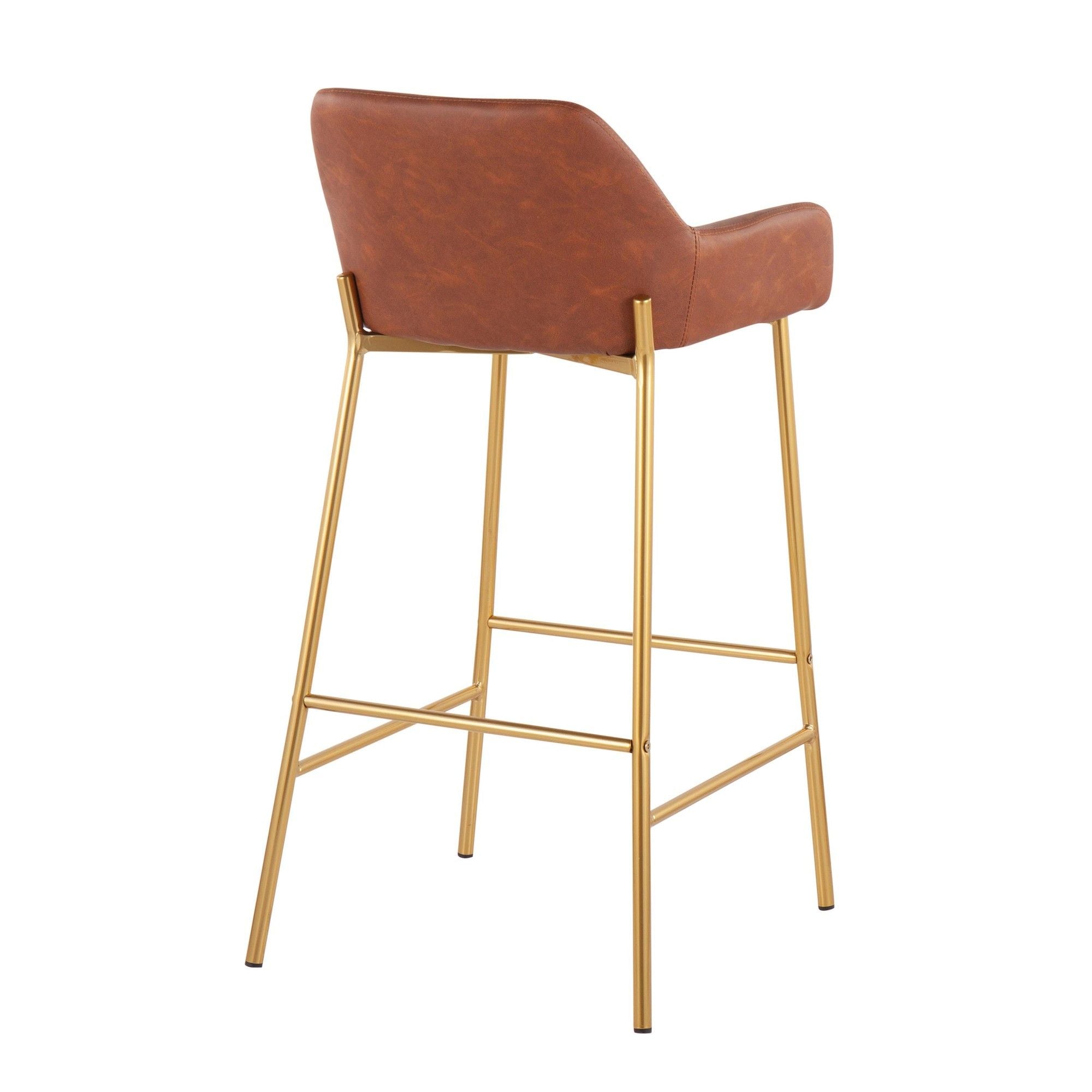 Daniella - Fixed-Height Bar Stool (Set of 2) - Gold Metal And Camel Faux Leather