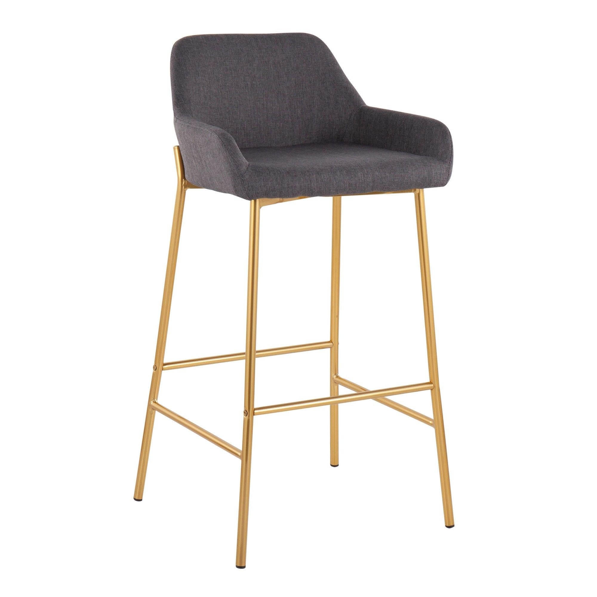 Daniella - Fixed-Height Bar Stool (Set of 2) - Gold Metal And Charcoal Fabric