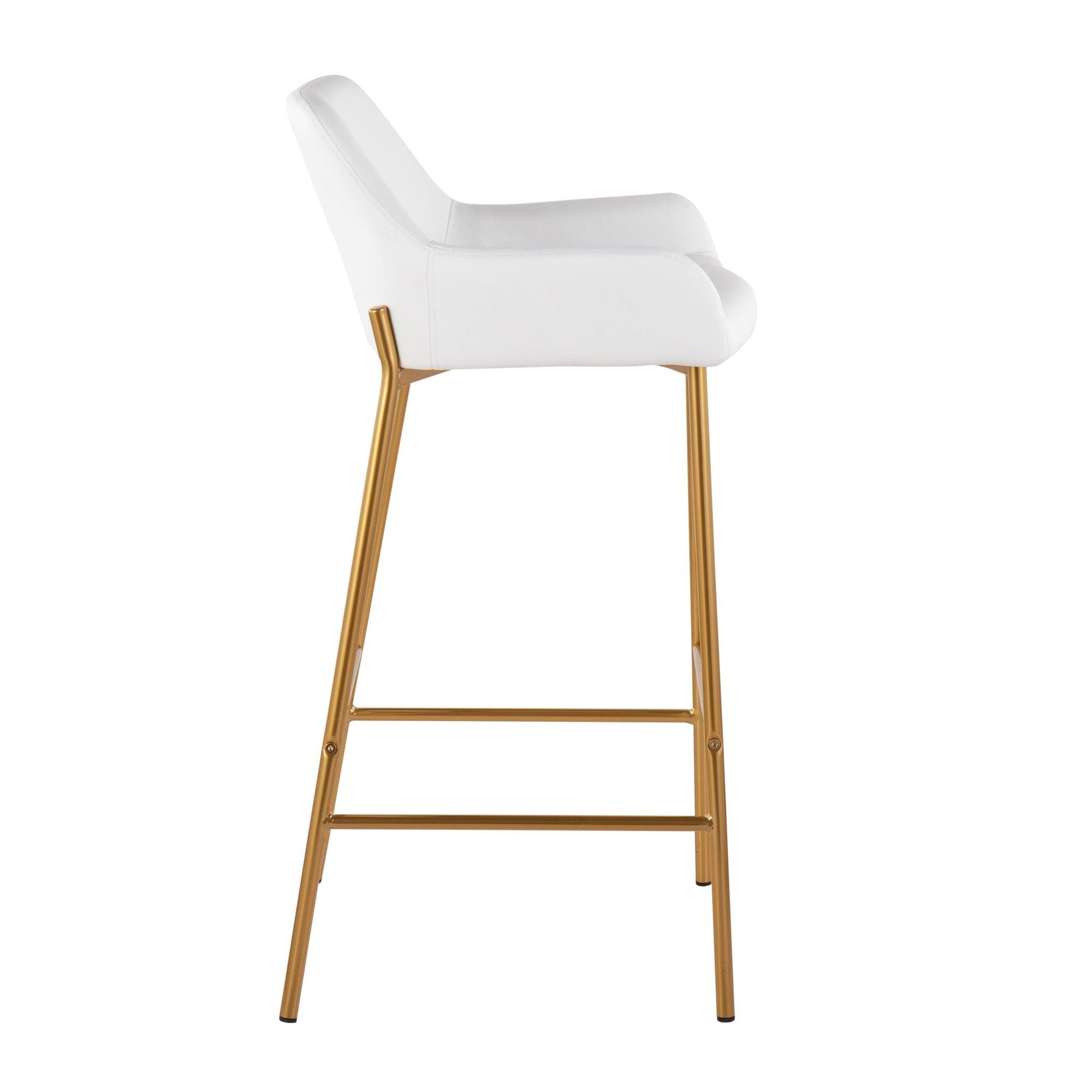 Daniella - Fixed-Height Bar Stool (Set of 2) - Gold Metal And White Faux Leather