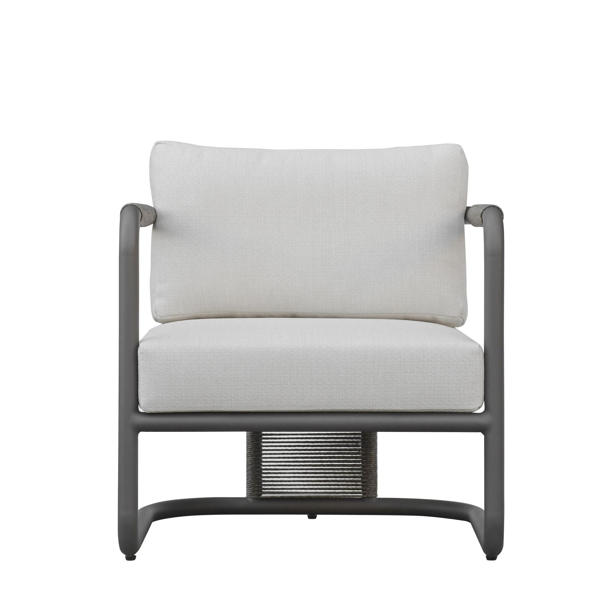Relax in refined comfort with the Dorado Outdoor Club Chair. Its bold gray metal frame is softened by plush, removable olefin cushions in a soft off-white hue. Designed with wide proportions and gently sloped armrests, this chair invites you to sit back and stay a while—perfect for poolside lounging or patio relaxation.
