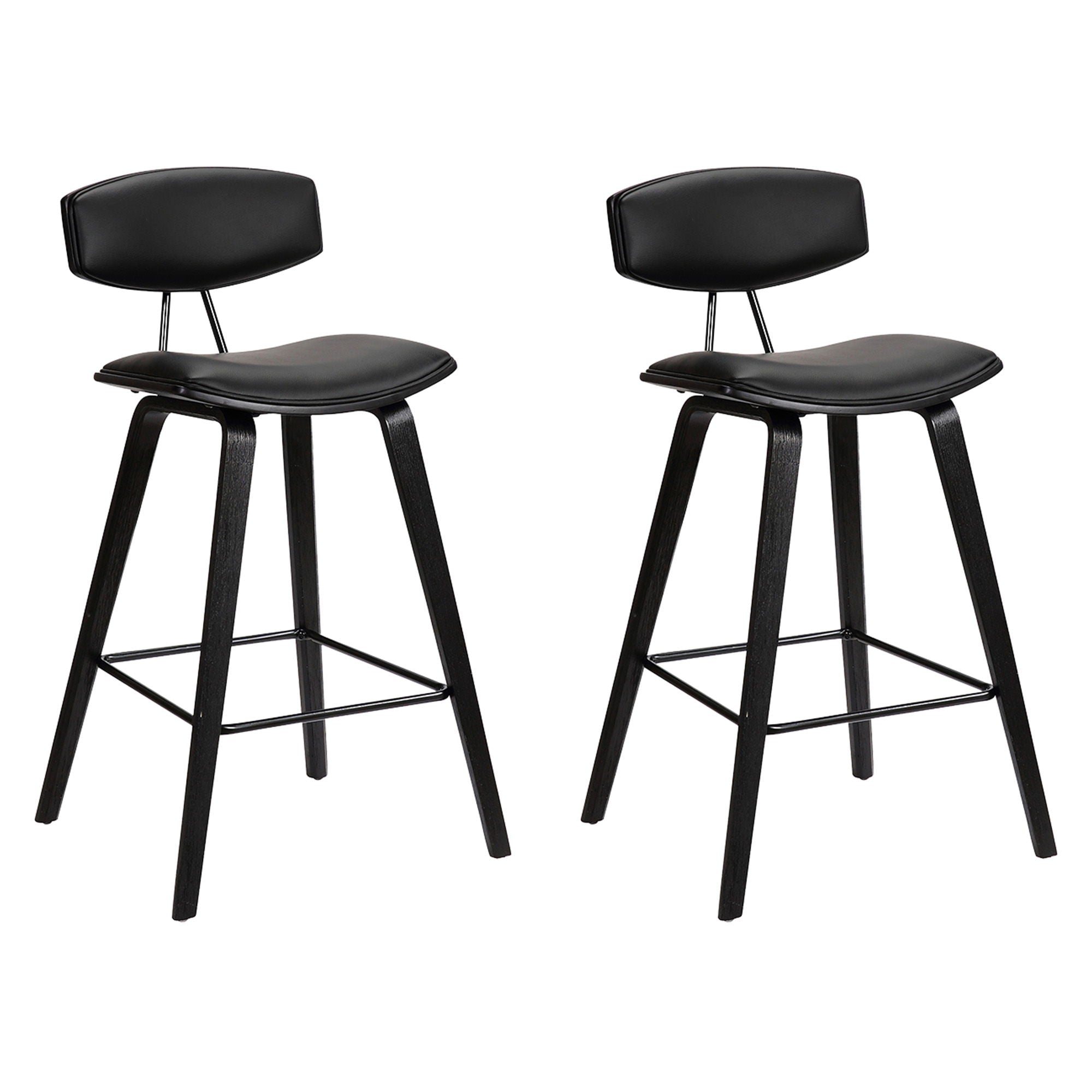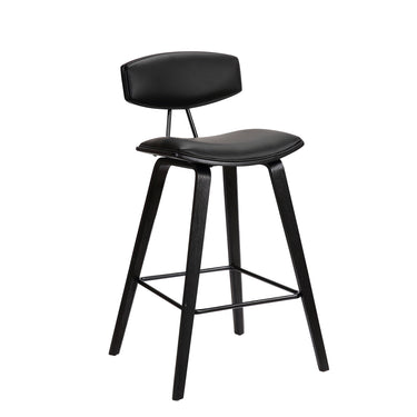 Fox - 28.5" Bar Height Mid-Century Modern Bar Stool (Set of 2) - Black Faux Leather And Black Wood