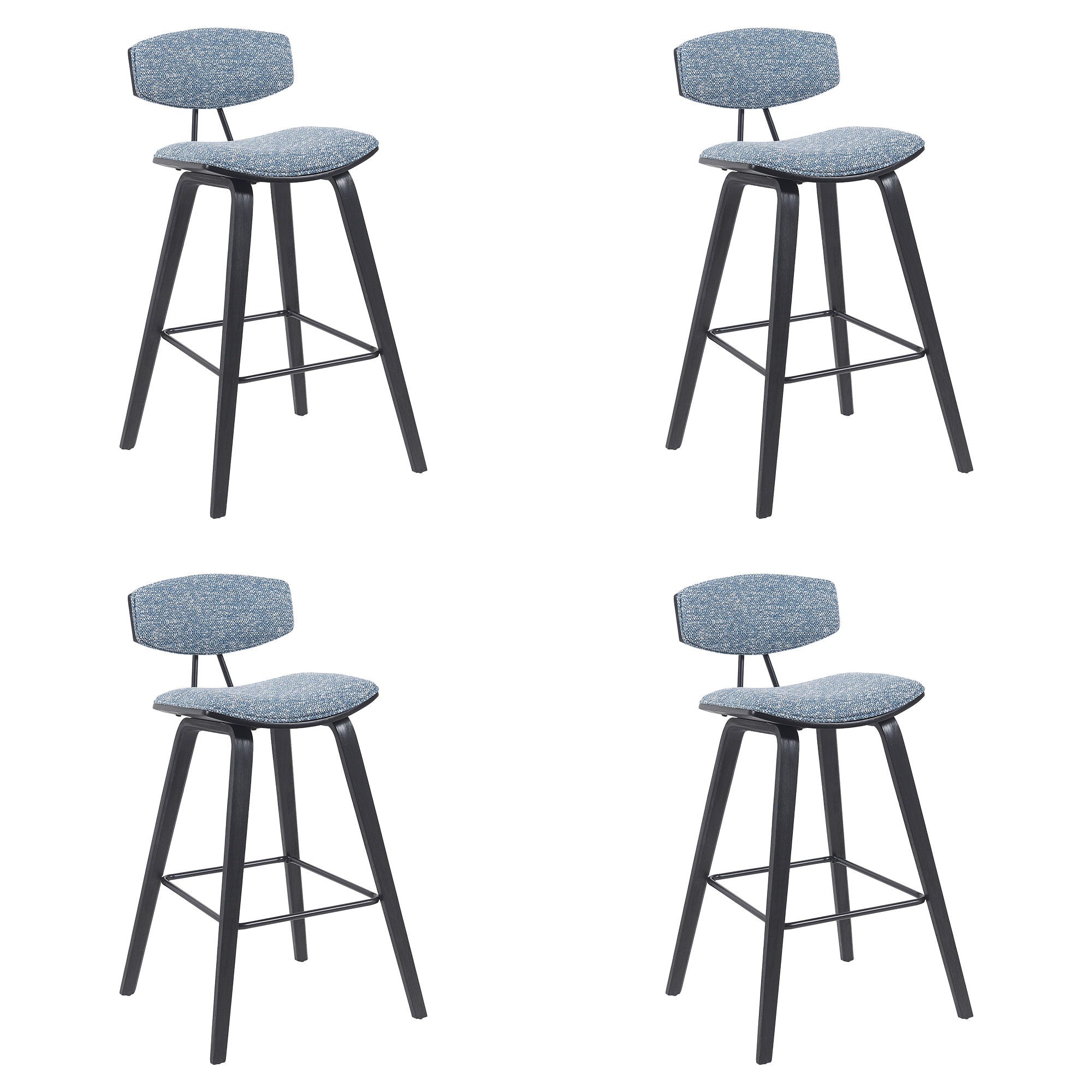 Whether drawn up to a sleek kitchen island for a breakfast nook or rounding out your home bar with a perfect perch, a bar stool like this is a versatile seating solution with sleek modern style. The Armen Living Fox Mid-Century Modern Bar Stool is a sophisticated and functional modern piece certain to enhance the aesthetic of any style home or apartment. The high-density foam cushioned back, and seat will allow endless hours of entertaining or lounging. The curved wood medium high back with padded support is ideal for posture alignment and an unmatched support for days on end. The foundation of the product is supported by wood and steel footrest for a chic and stylish aesthetic without comprising practicality and functionality of this item. The Mid-Century Modern style silhouette gives you a timeless look with the durability to last for many years to come.You can easily incorporate this stool into your kitchen, dining room, home bar, or office!