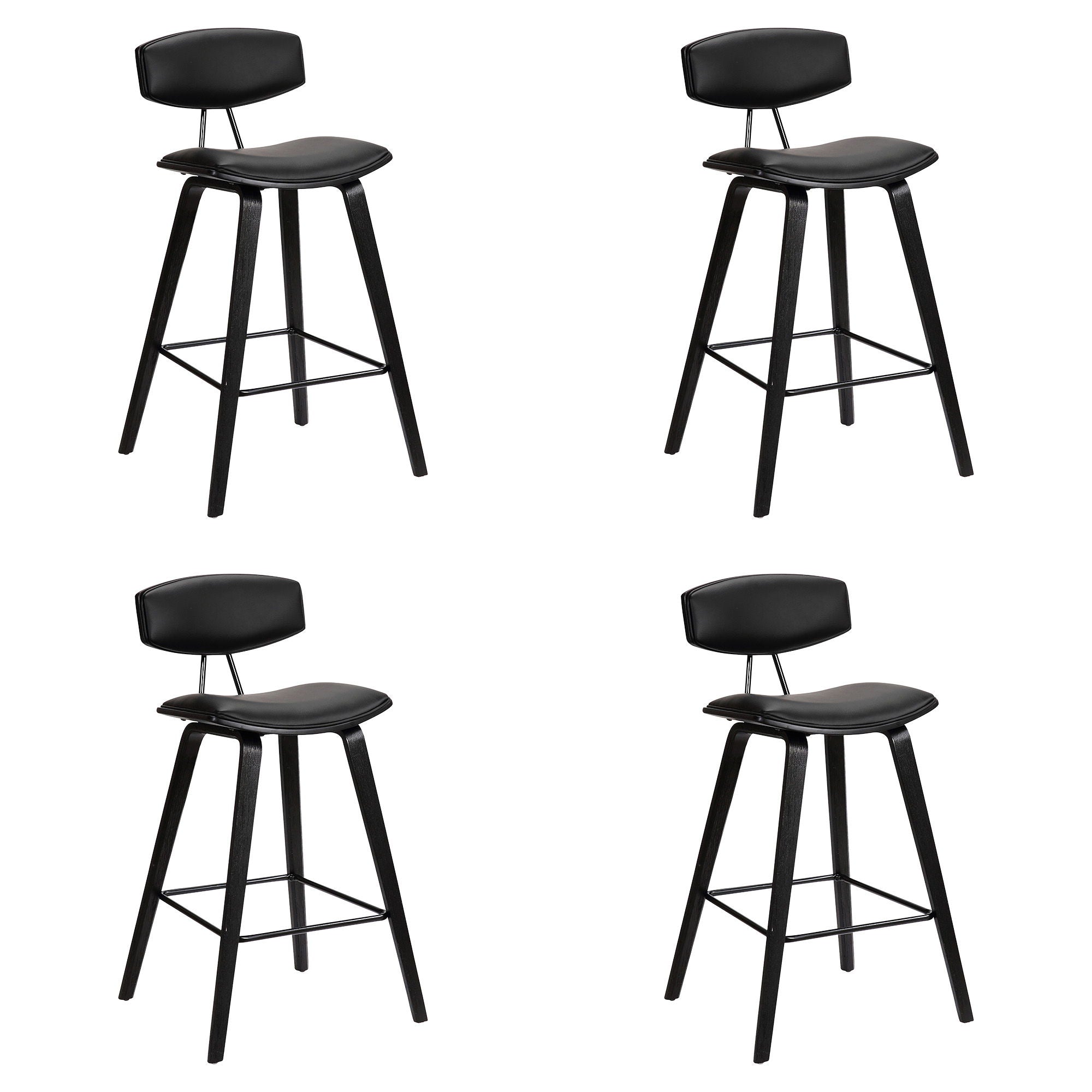 Fox - 28.5" Bar Height Mid-Century Modern Bar Stool (Set of 4) - Black Faux Leather And Black Wood