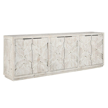 The Frederick Reclaimed Pine Sideboard redefines rustic sophistication. Crafted from reclaimed pine, it showcases natural knots and cracks, emphasizing its eco-conscious appeal. Featuring intricately carved doors, ample storage, and a neutral finish, it seamlessly balances practicality with artisanal craftsmanship. Perfect for refined and sustainable living.