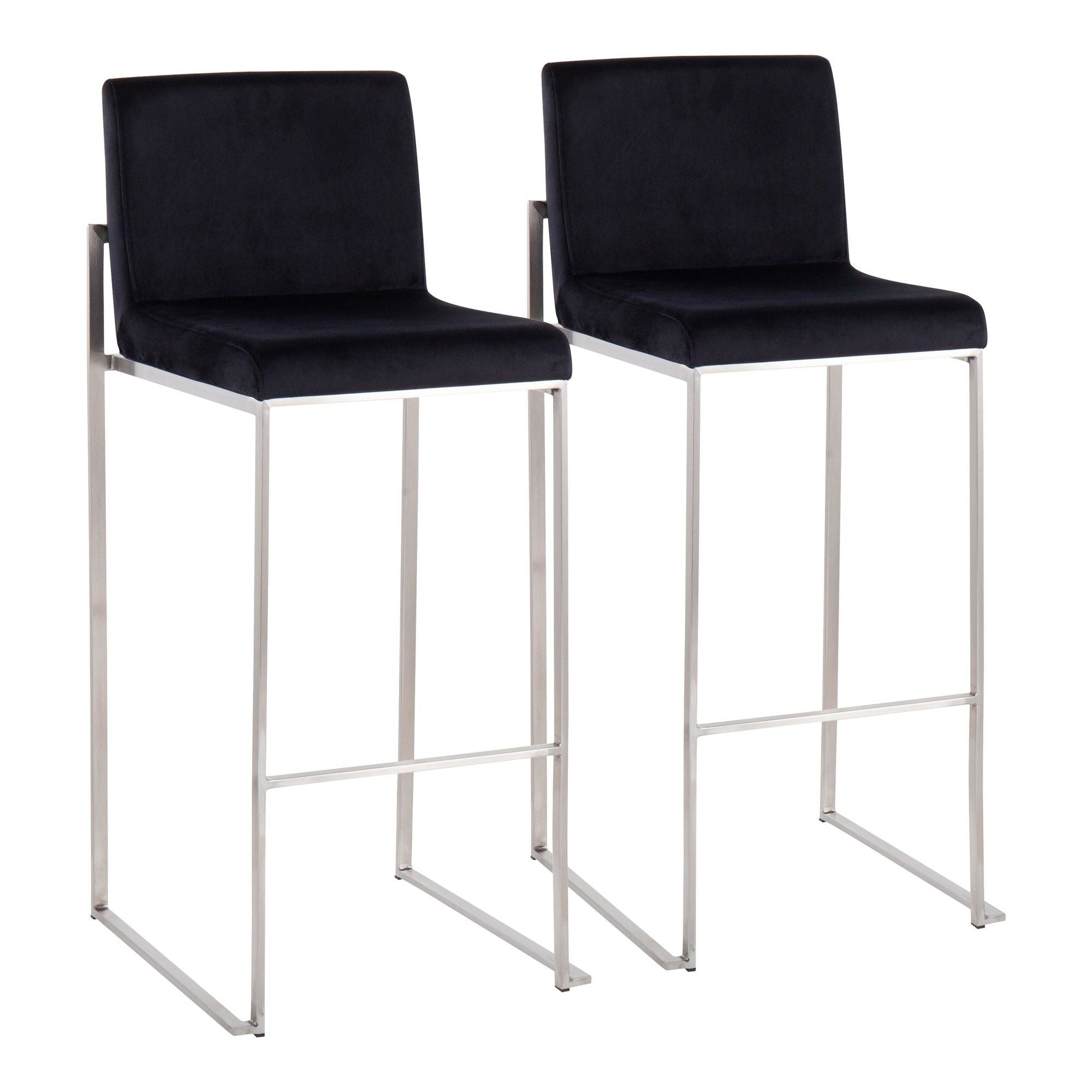 Fuji - High Back Barstool - Stainless Steel And Black Velvet (Set of 2)