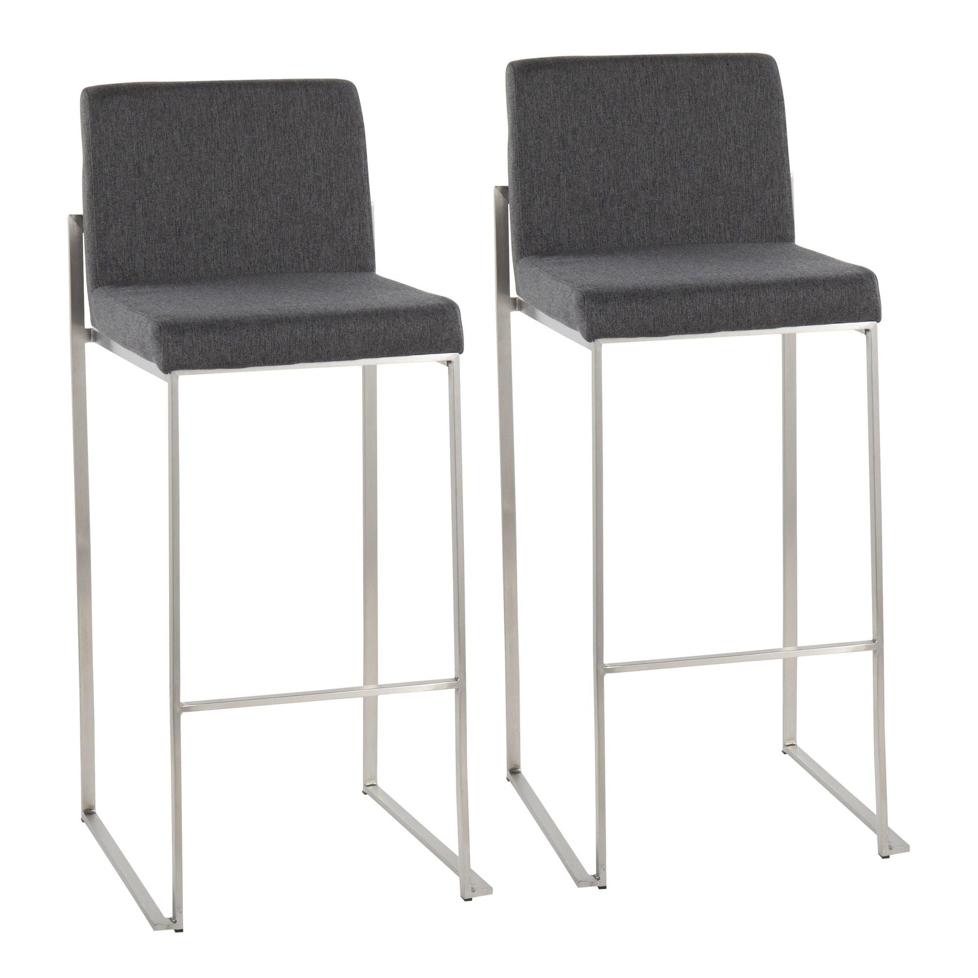 Fuji - High Back Barstool - Stainless Steel And Charcoal Fabric (Set of 2)