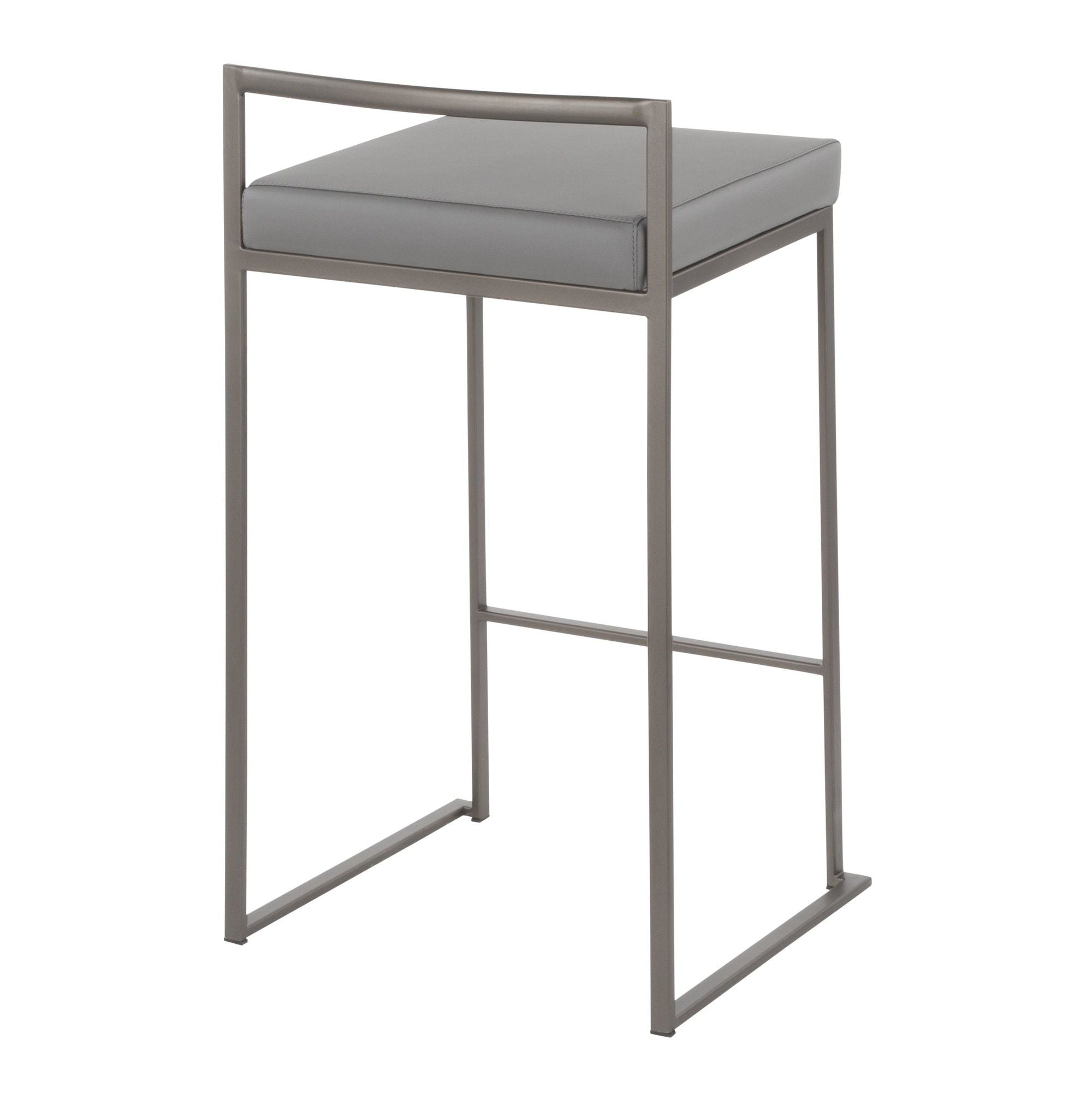Fuji - Stackable Counter Stool (Set of 2) - Antique With Gray Faux Leather Cushion