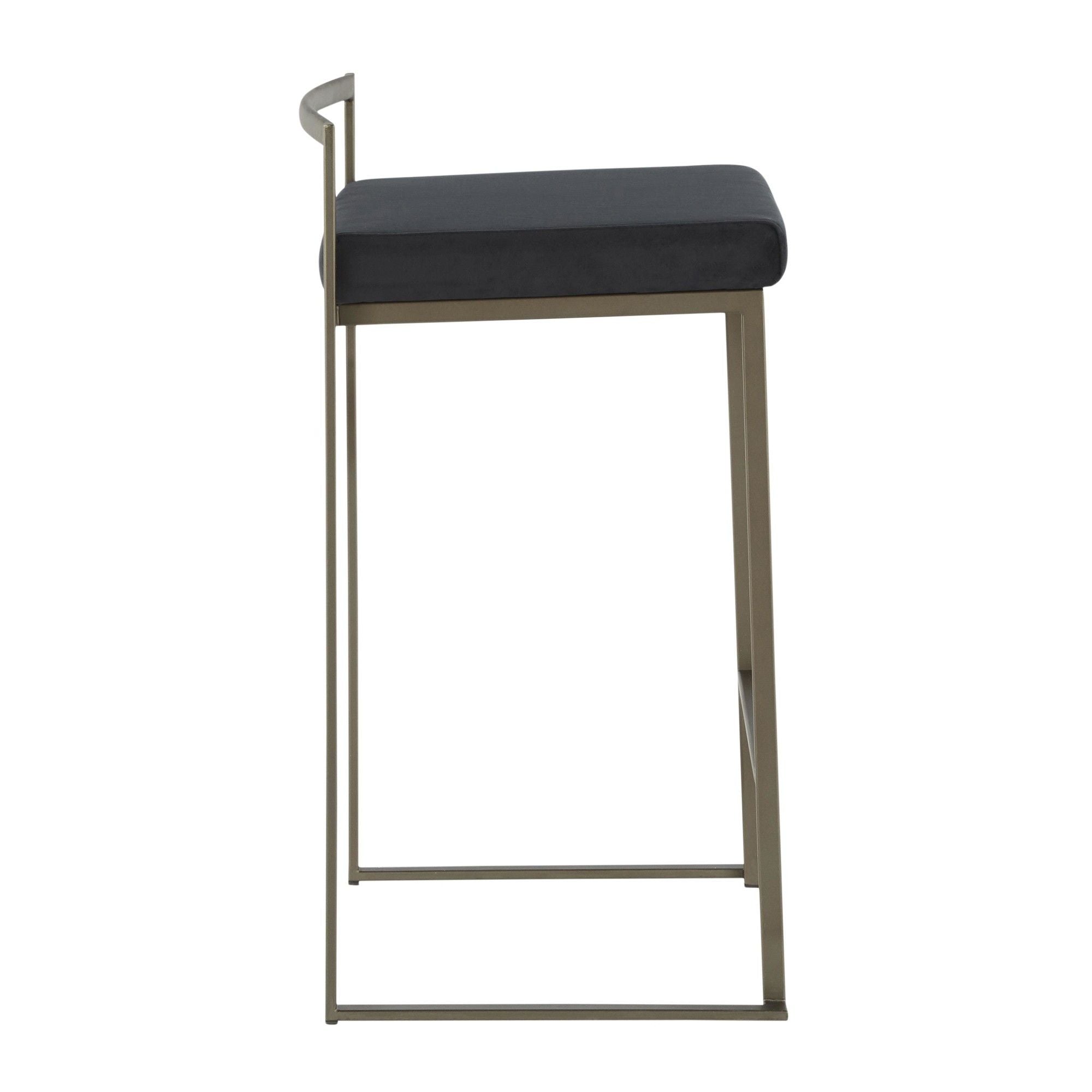 Fuji - Stackable Counter Stool (Set of 2) - Antique With Black Velvet Cushion