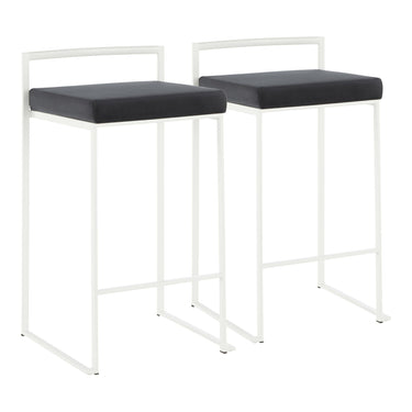 Fuji - Stackable Counter Stool - White With Black Velvet Cushion (Set of 2)