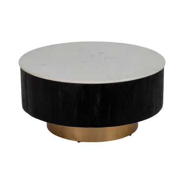 Gold Pedestal Coffee Table Marble Top 34" - White / Black