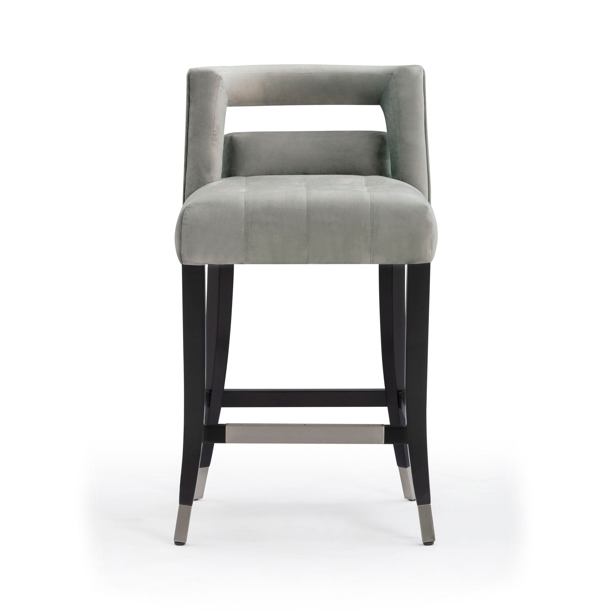 Not for the faint of heart, these stools will make you swoon. Making their debut with a bold statement, the Hart stool is available in bar and counter height options. Hand-applied nailheads and metal tipped legs match the accompanying footrest.
