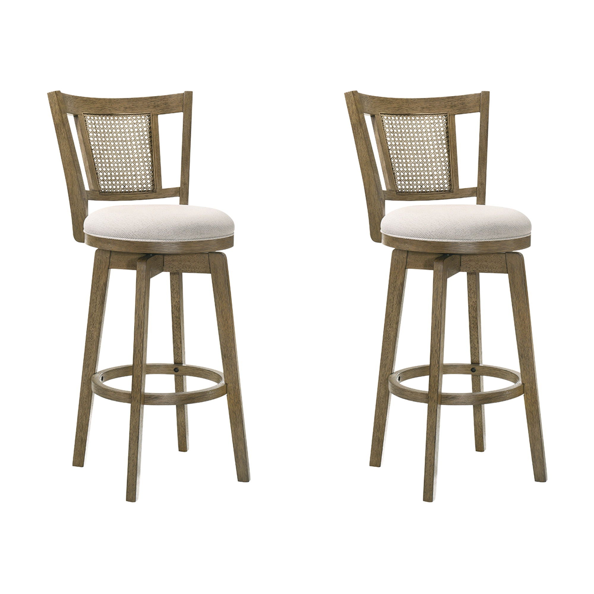 Isla - 26" Putty Brown Counter Height Rubberwood Swivel Barstool (Set of 2) - Cream Fabric Seat