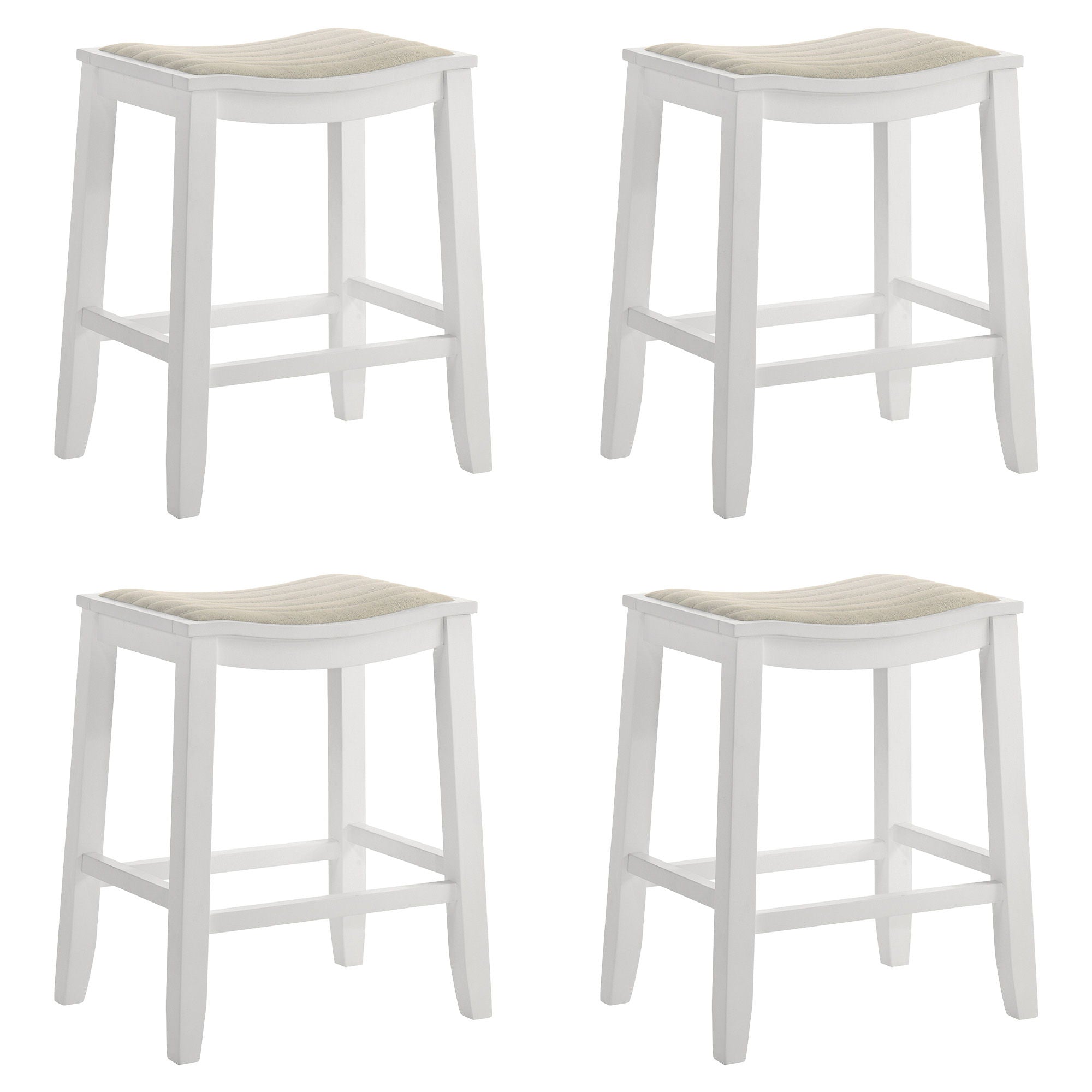 Iyani - Coastal Modern Wood Counter Height Kitchen Bar Stool (Set of 4) - White Finish With Dune Cloud Fabric Upholstered Seat