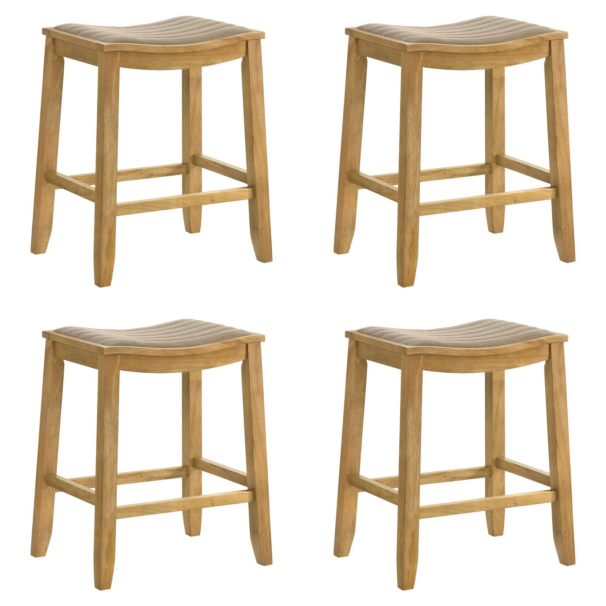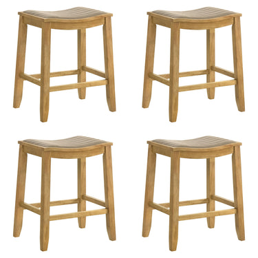 Iyani - Coastal Modern Wood Counter Height Kitchen Bar Stool (Set of 4) - Amber Glow Finish With Twilight Taupe Fabric Upholstered Seat