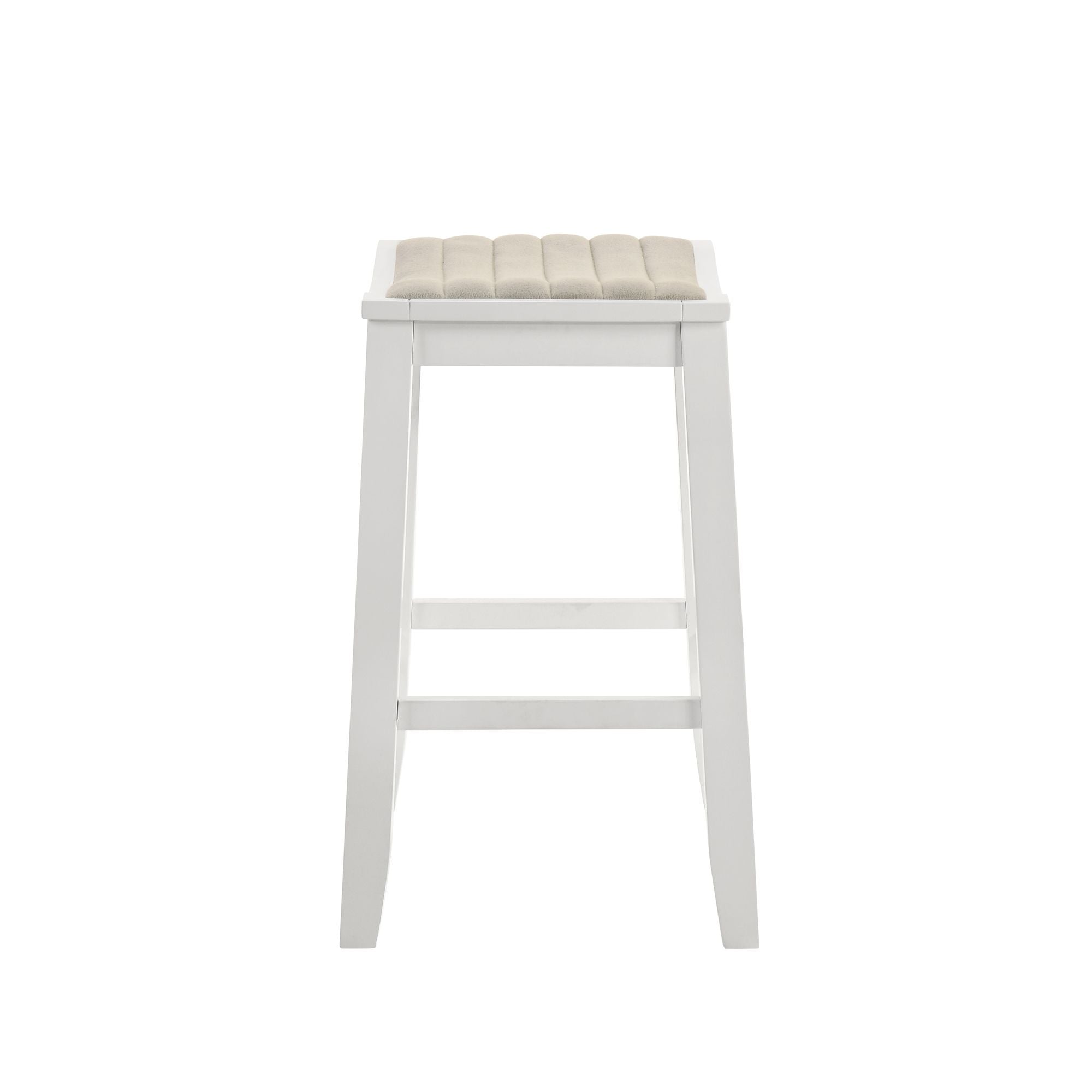 Iyani - Coastal Modern Wood Counter Height Kitchen Bar Stool (Set of 2) - White Finish With Dune Cloud Fabric Upholstered Seat