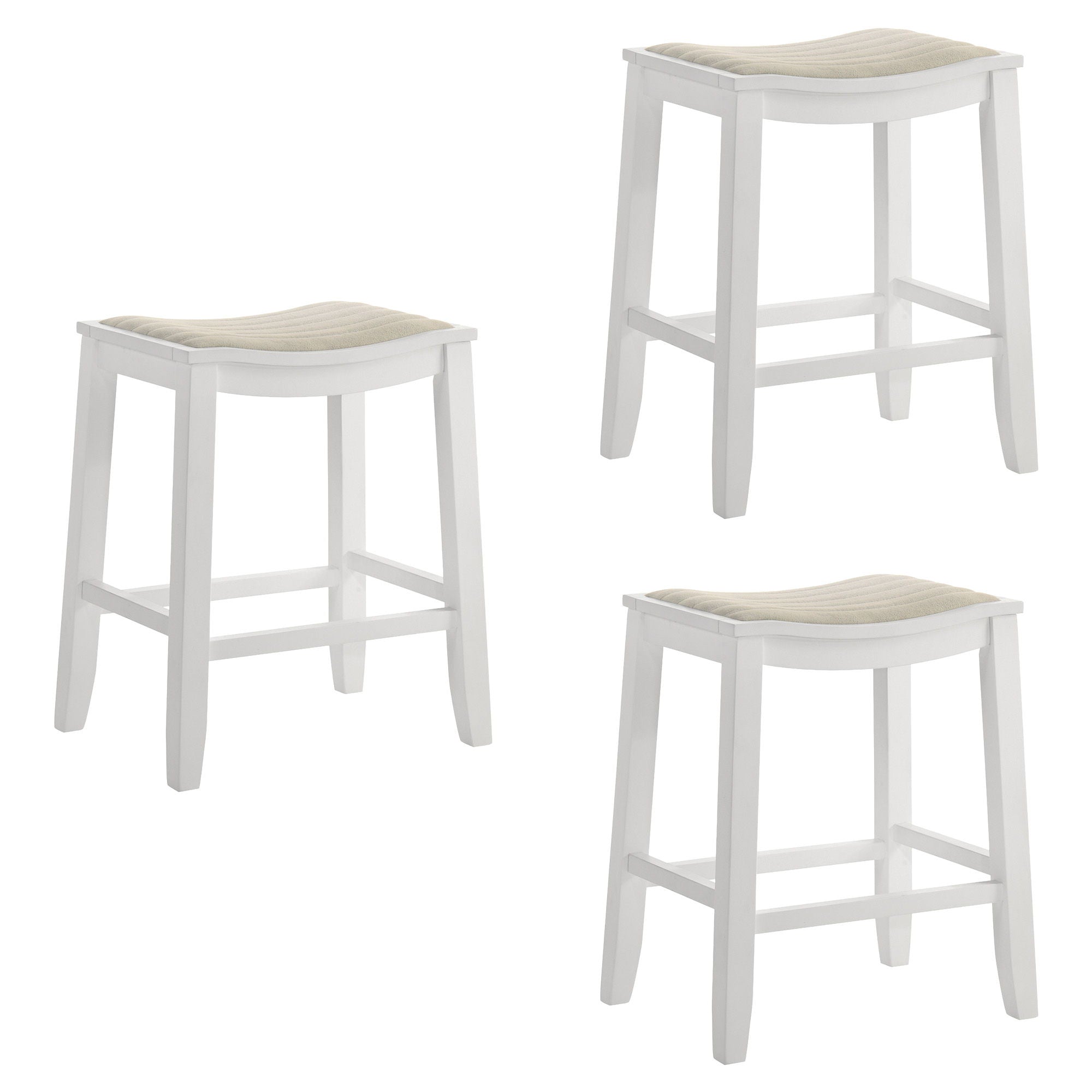 Iyani - Coastal Modern Wood Counter Height Kitchen Bar Stool (Set of 3) - White Finish With Dune Cloud Fabric Upholstered Seat