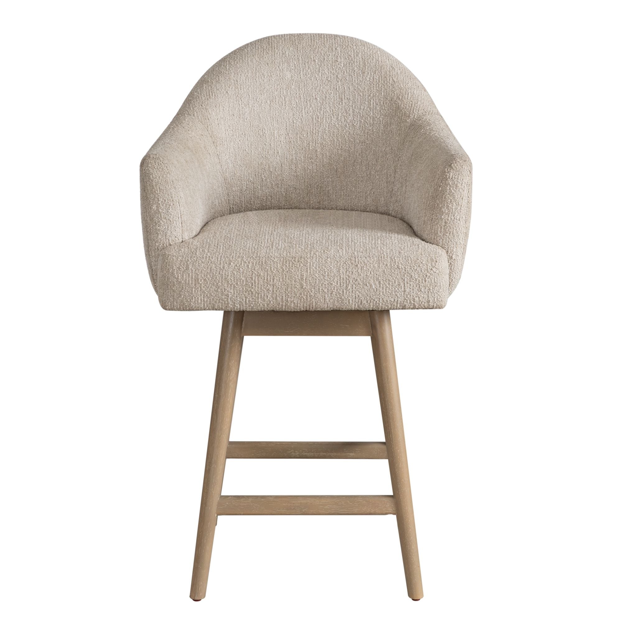 The Jaxon Barstool combines elegant modern transitional design with everyday practicality, making it the perfect choice for your kitchen island, bar, or counter. With its soft curves, low-back upholstered seat, and built-in armrests, the Jaxon Barstool offers both comfort and sophistication. Upholstered in durable polyester fabric, the fiber-wrapped foam cushioning ensures a plush and cozy seating experience, ideal for casual meals or entertaining guests. Available in two versatile heights – 26-inch counter height and 30-inch bar height – the Jaxon Barstool caters to a variety of settings. Its sturdy rubberwood frame, finished with a brushed technique, highlights the natural beauty of the wood while ensuring long-lasting durability. The 360-degree swivel feature adds ease of movement, making it perfect for lively conversations and convenient access. Choose from timeless finishes like Brown Oak with Morning Fog Upholstery or Washed Wood with Ancient Stone Upholstery, both designed to complement a range of interior styles. Equipped with plastic glides to protect your floors, the Jaxon Barstool is as functional as it is stylish. The Jaxon Barstool comes with a 1-year warranty covering fabric, foam, and frames for peace of mind. Assembly is simple and takes approximately 30 minutes with just a screwdriver and two people for a quick and hassle-free setup.