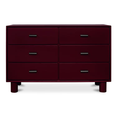 The Jolene 6-drawer dresser infuses the bedroom with a touch of vibrant elegance. This deep red dresser, expertly crafted with a rubberwood frame, offers both style and practicality. The six drawers provide versatile organization options. Playful legs and a paired-back frame with handle detailing create a charming silhouette that brings personality without compromising sophistication.