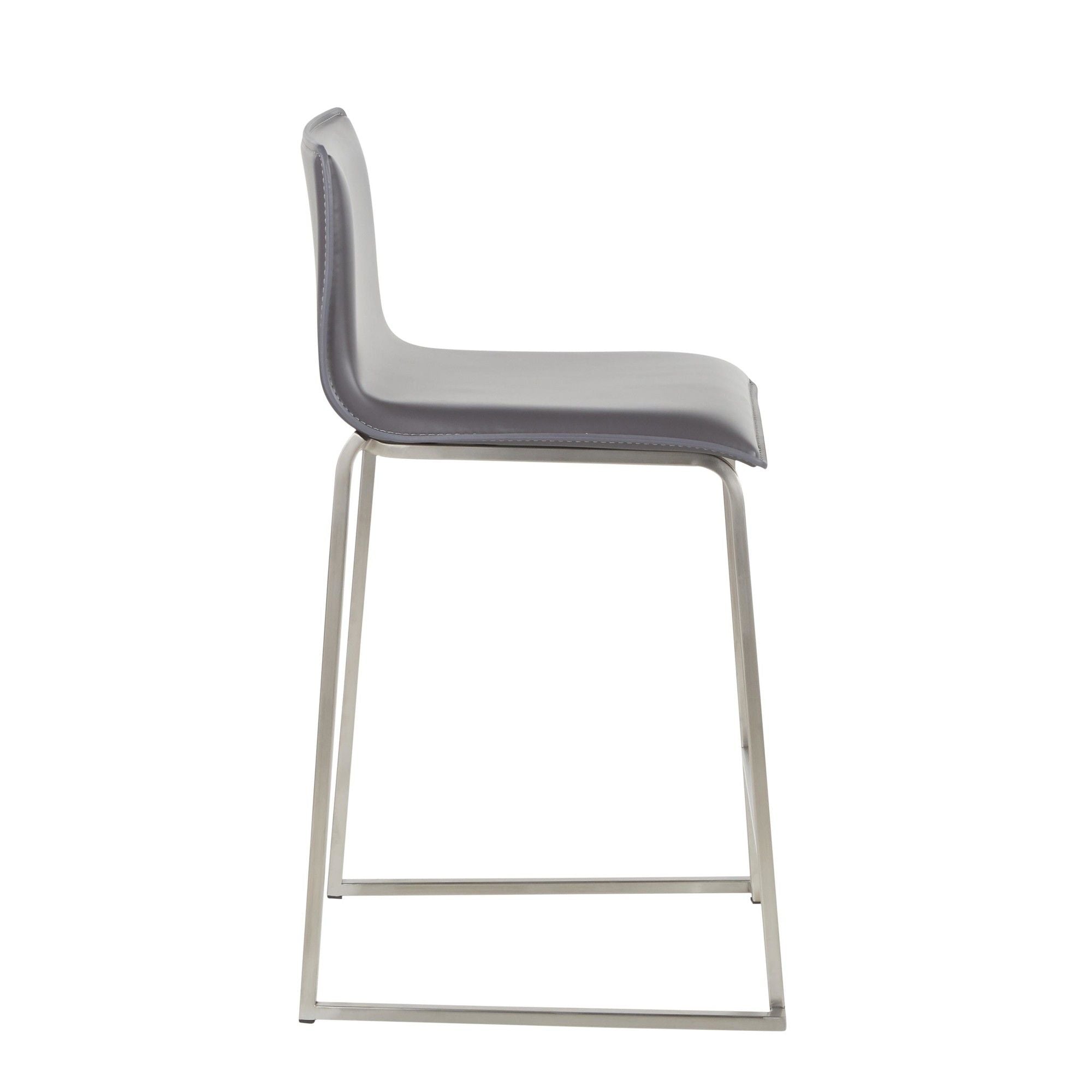 Mara - 26" Counter Stool - Brushed Stainless Steel, And Gray Faux Leather (Set of 2)