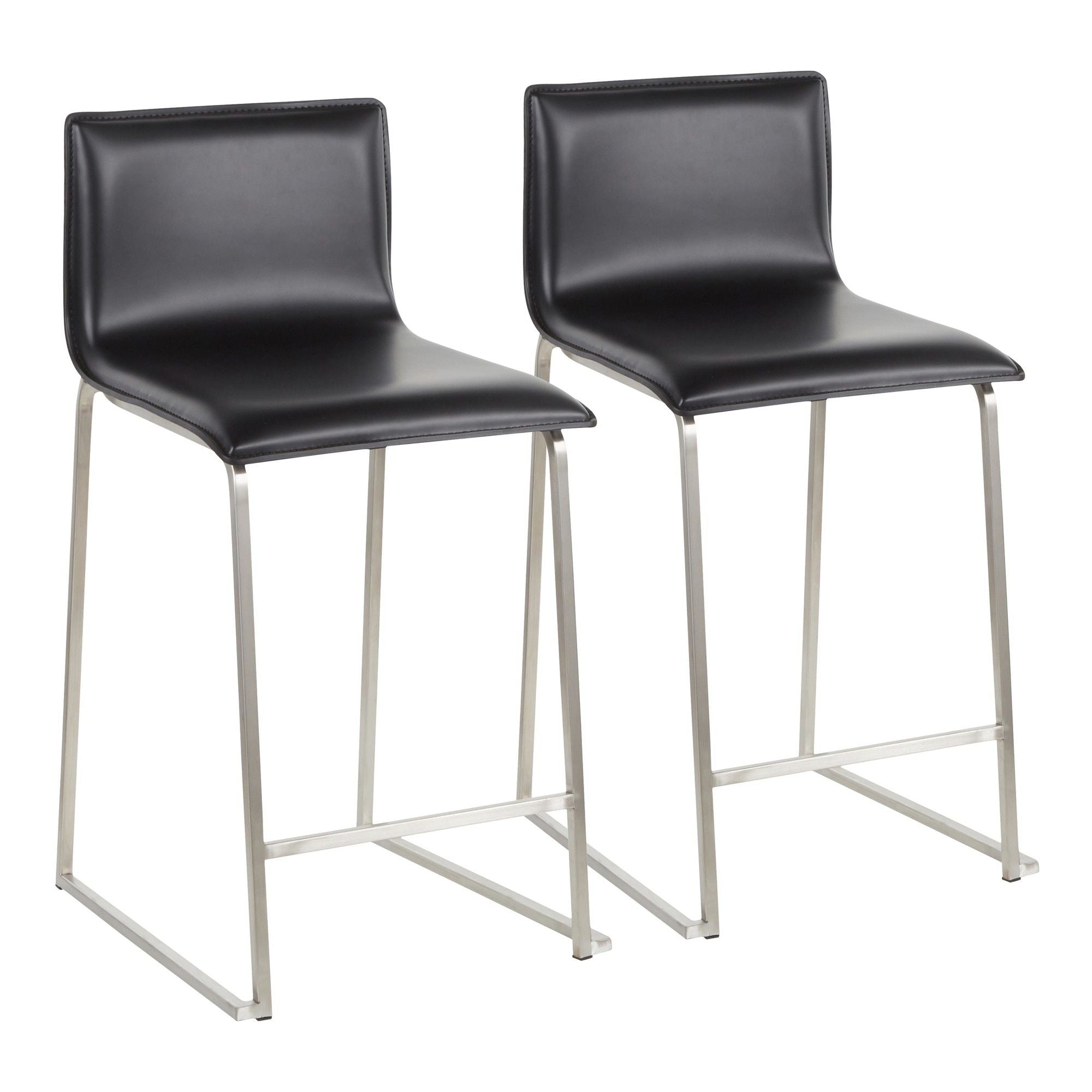 Mara - 26" Counter Stool - Brushed Stainless Steel, And Black Faux Leather (Set of 2)