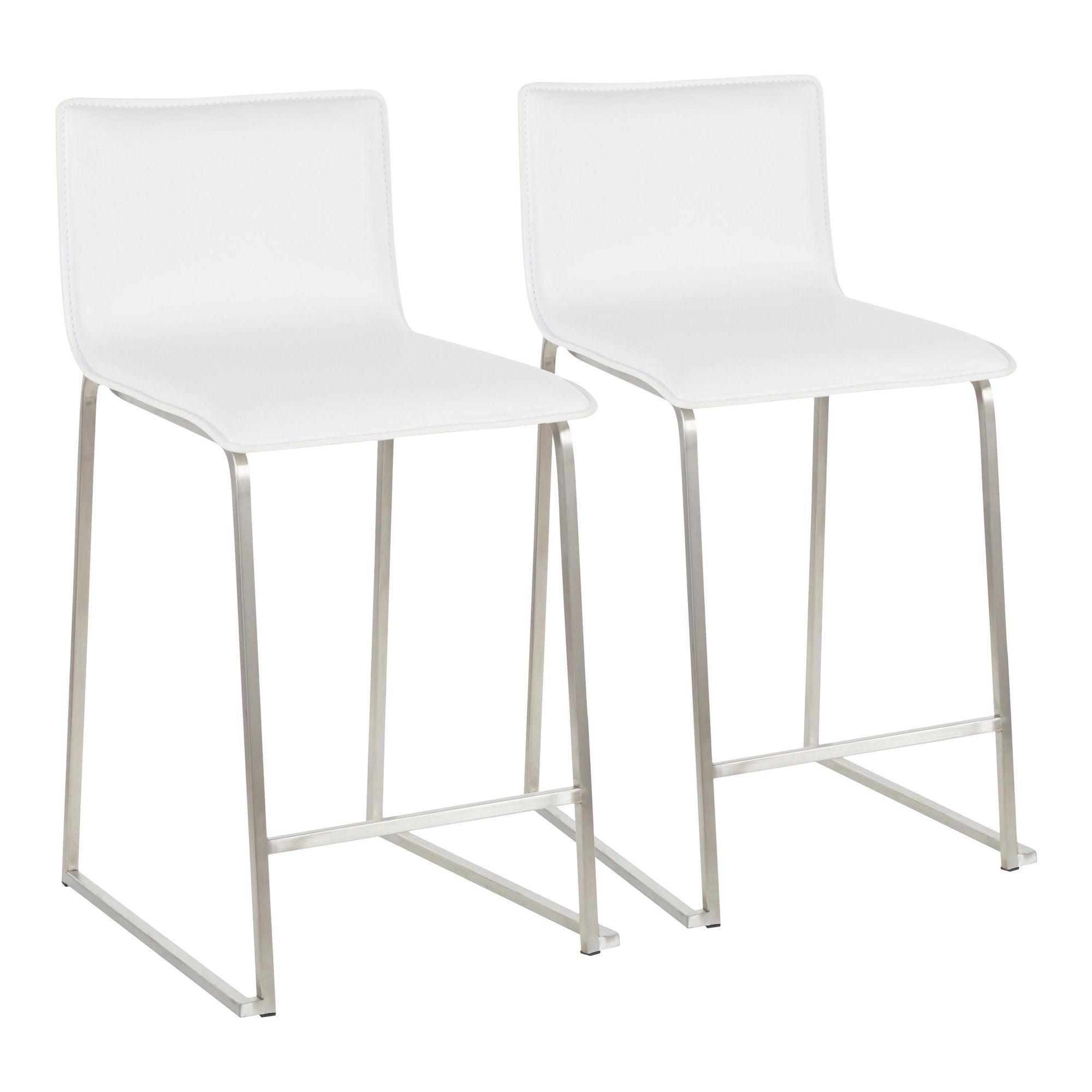 Mara - 26" Counter Stool - Brushed Stainless Steel, And White Faux Leather (Set of 2)