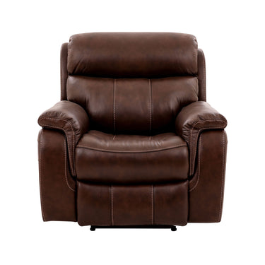 The Montague Dual Power Leather Recliner Chair in Brown from Armen Living instantly adds a touch luxury and comfort to your home or apartment. Dual power furniture uses two motors for optimal comfort: one controlling the headrest and one controlling the footrest. This allows you to find the optimal position for movie night or the big game. These types of recliners also require a power source and function with push button operation. This living room chair is upholstered in genuine leather that exudes a butter soft texture and can easily be cleaned. Genuine leather outlasts other upholstery furniture as it’s a flexible and strong material, making it resistant to tears and punctures. This leather recliner can last for decades if cared for properly and allows you to create a hypoallergenic environment. The solid pine wood frame ensures the chairs durability and it’s sinuous spring system will provide unmatched comfort and support. The foam seat and pillow-top arms enhance relaxation. A leather recliner chair is an ideal choice for someone who wants to instantly relax after a long day or those who like a little luxury in their home space, they also benefit those with limited mobility. With the push of a button, you can adjust your headrest to find the perfect angle for reading or watching TV. This control over your comfort helps you avoid neck strain and keeps your head supported. The Montague collection features a leather recliner chair and a reclining sofa, available together as a sofa set or individually. The Montague power recliner is available in brown genuine leather upholstery and makes an ideal addition to any living room, mancave, den, home office, or nursery!