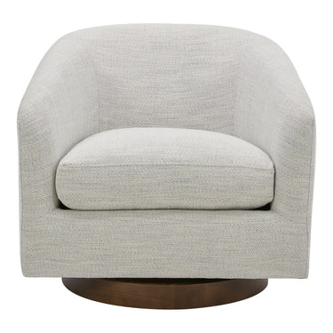 Light and cheerful. Calm and relaxed. The Oscy swivel chair is a cloud of comfort that brings airy energy and convenience into your living room with its 360° swivel, floating base design. Idyllic for a reading nook or as an accent chair, Oscy creates a chic retreat with softly textured fabric upholstery that looks fresh and keeps things cozy.
