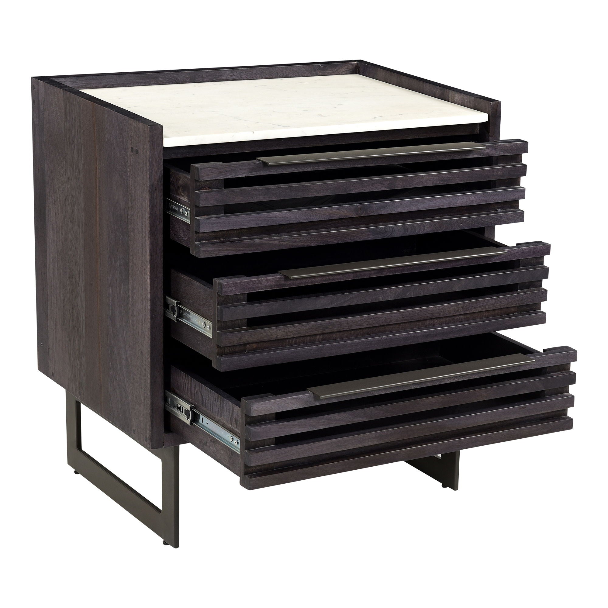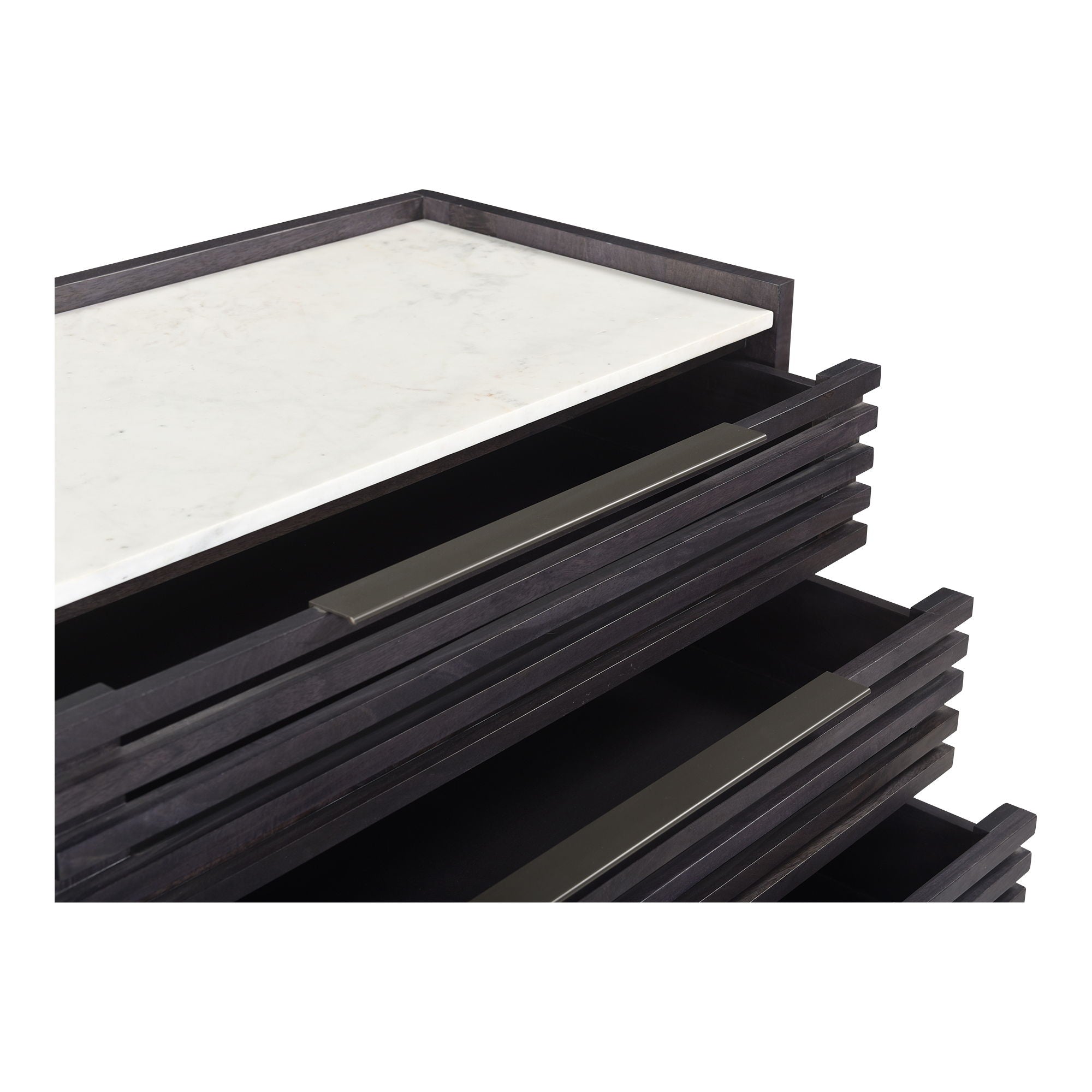 Balanced in its design, the Paloma 3 drawer chest adds natural beauty to the bedroom. With a ribbed front and white Banswara marble top, this piece brings a unique depth and visual intrigue to your sleeping space. The solid mango wood used is ethically sustainable, strong and durable. The clean lines lend sophistication and structure, making this a timeless piece of bedroom furniture.