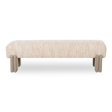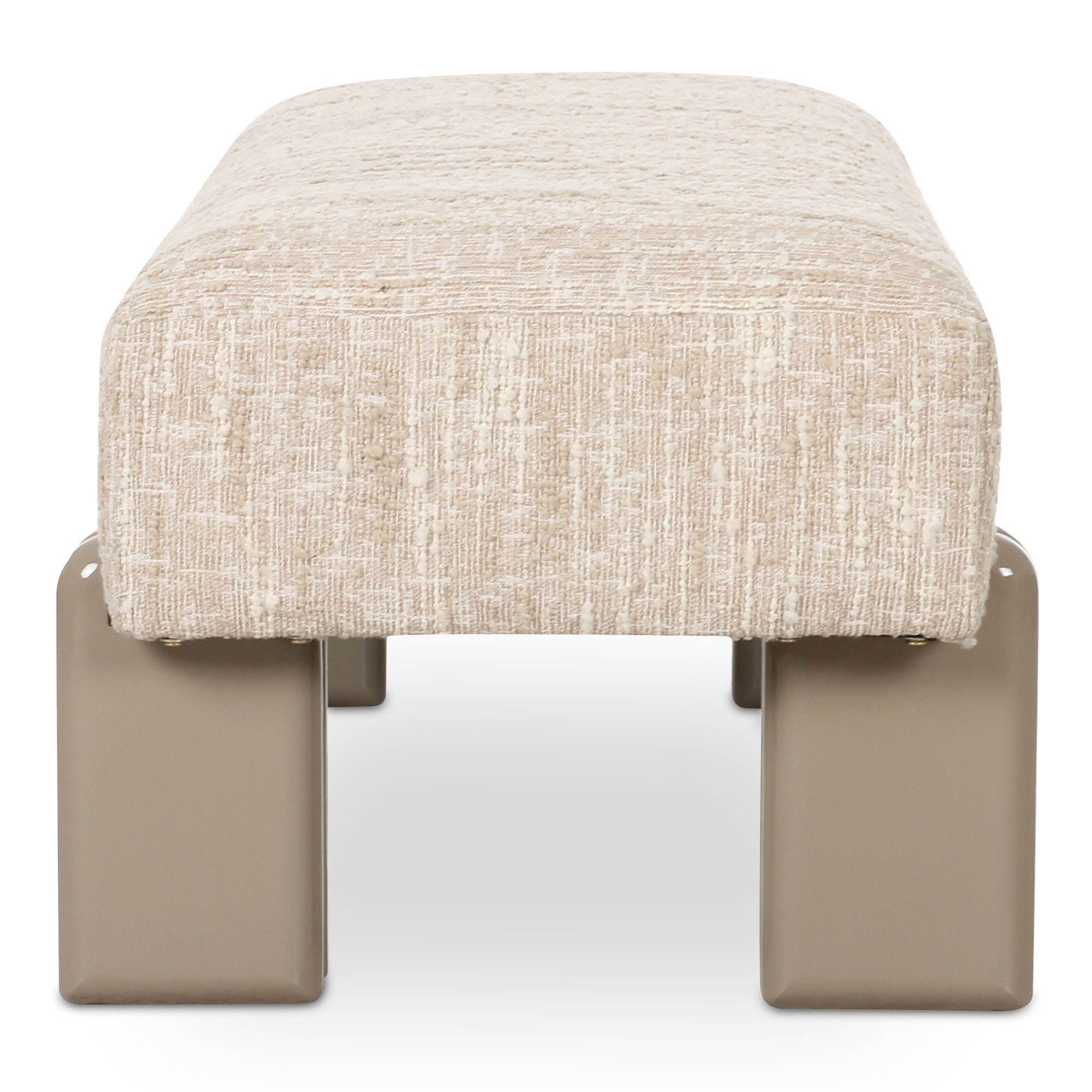 The Priya bench combines modernity and comfort with its high-gloss iron legs and contrasting textured fabric, while the double-leg column detail adds a unique touch of visual intrigue. At 56 inches wide, this bench works in entryways or bedrooms with its textured boucle yarn finish upholstery and high-density foam seat offering maximum comfort.