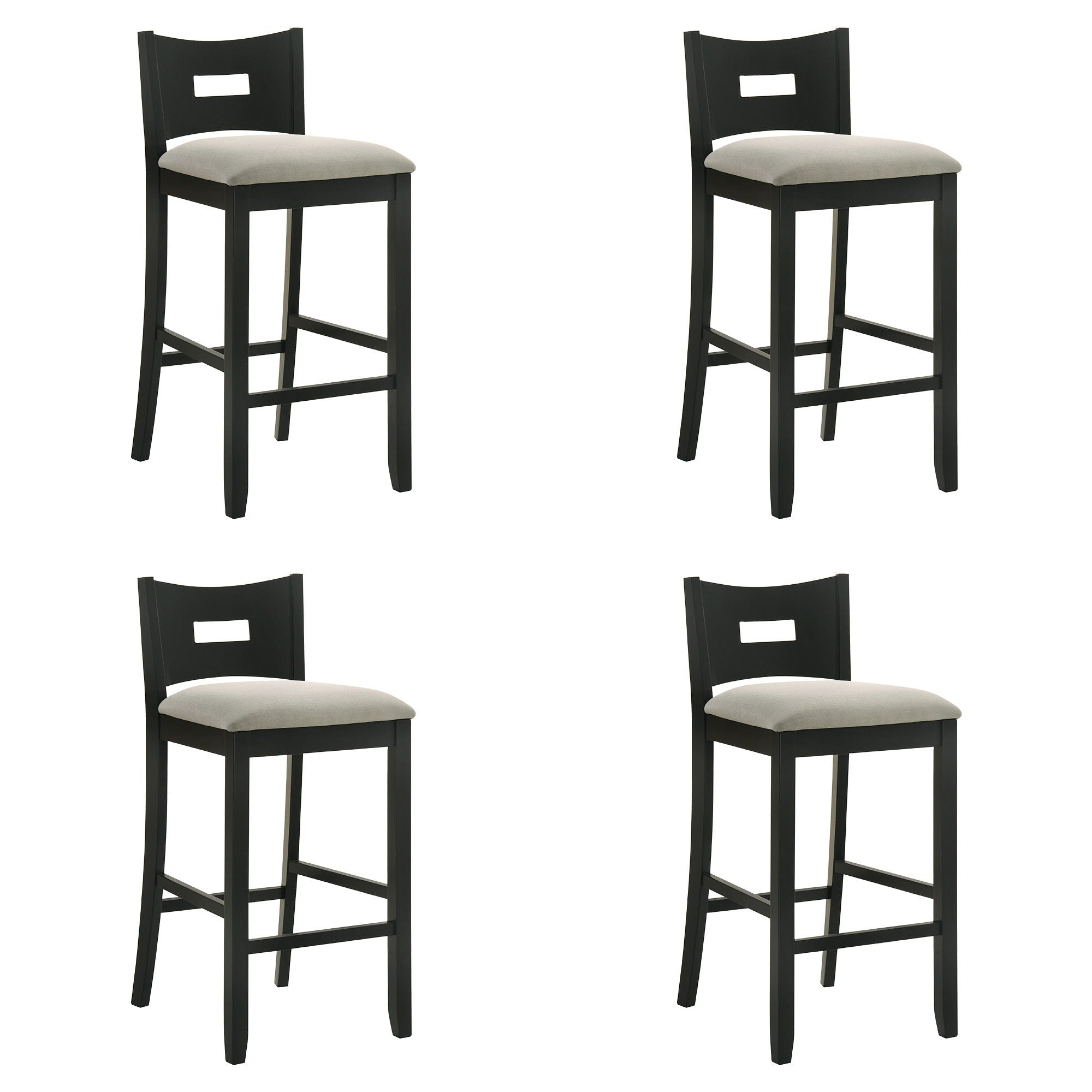 Ren - 30" Matte Black Bar Height Rubberwood Barstool (Set of 4) - Fog Fabric Seat
