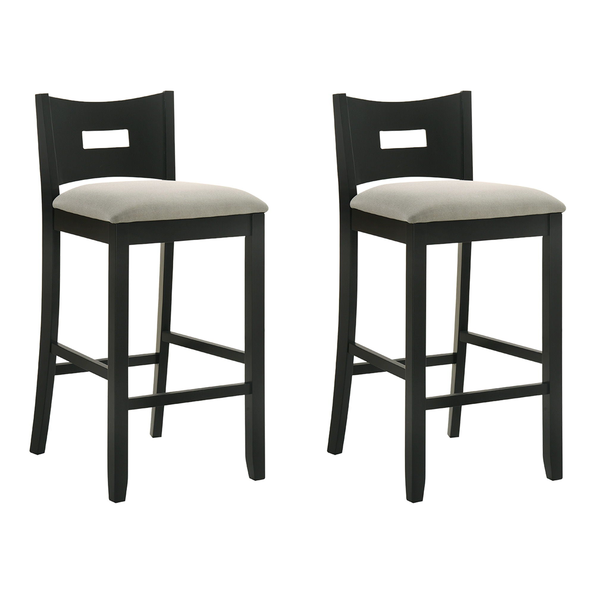 Ren - 30" Matte Black Bar Height Rubberwood Barstool (Set of 2) - Fog Fabric Seat