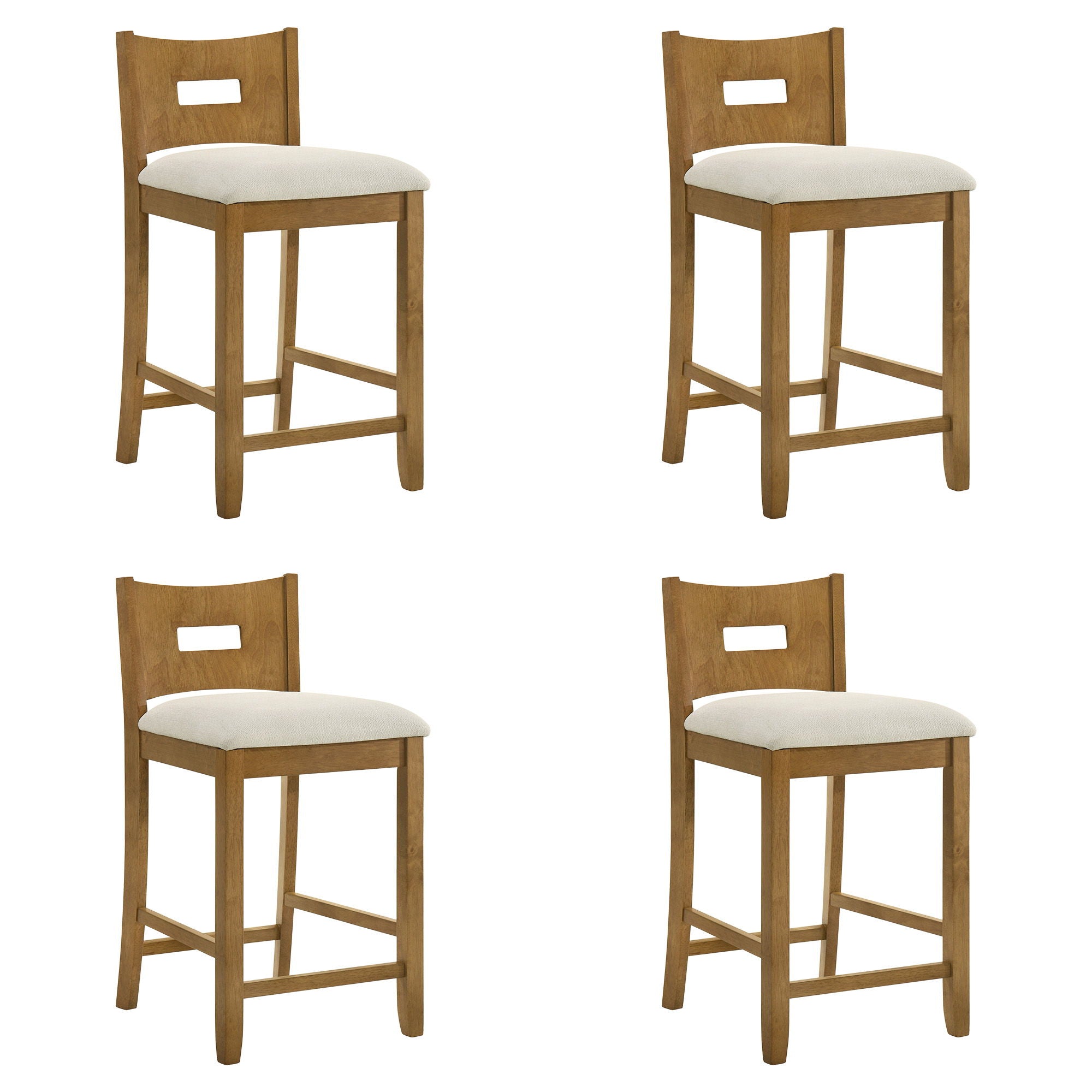 Ren - 30" Amber Glow Bar Height Rubberwood Barstool (Set of 4) - Ivory Fabric Seat