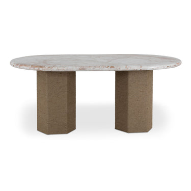 Gillian Segal for Moe's The Sartoria dining table invites conversation and collaboration. Its thick bullnose edge top is crafted with bold marble, a signature material for Gillian known for its European flair. A jute-wrapped pedestal base complements the vibrant top for a touch of organic texture, function, and support for its smooth, inviting form.