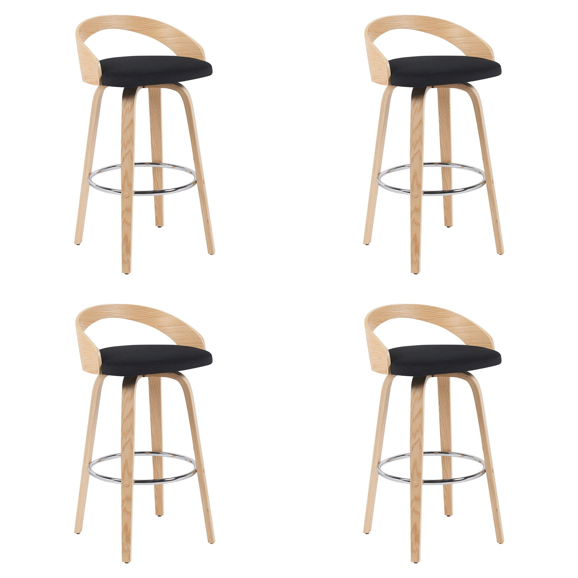 Sonia - Modern Swivel Bar Height Stool (Set of 4) - Black Upholstered Seat And Patterned Oak Wood Finish