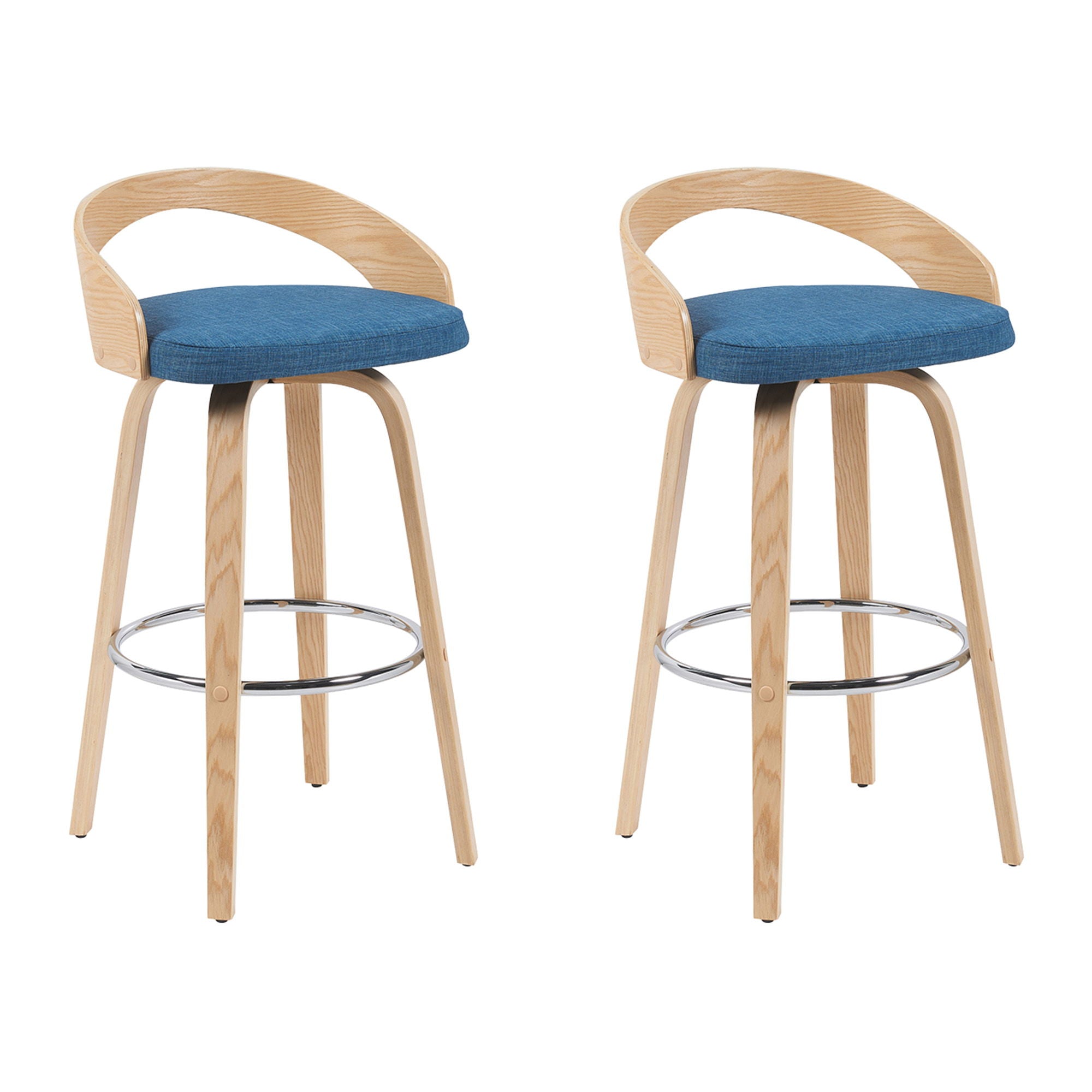 Sonia - Modern Swivel Bar Height Stool (Set of 2) - Blue Upholstered Seat And Patterned Oak Wood Finish