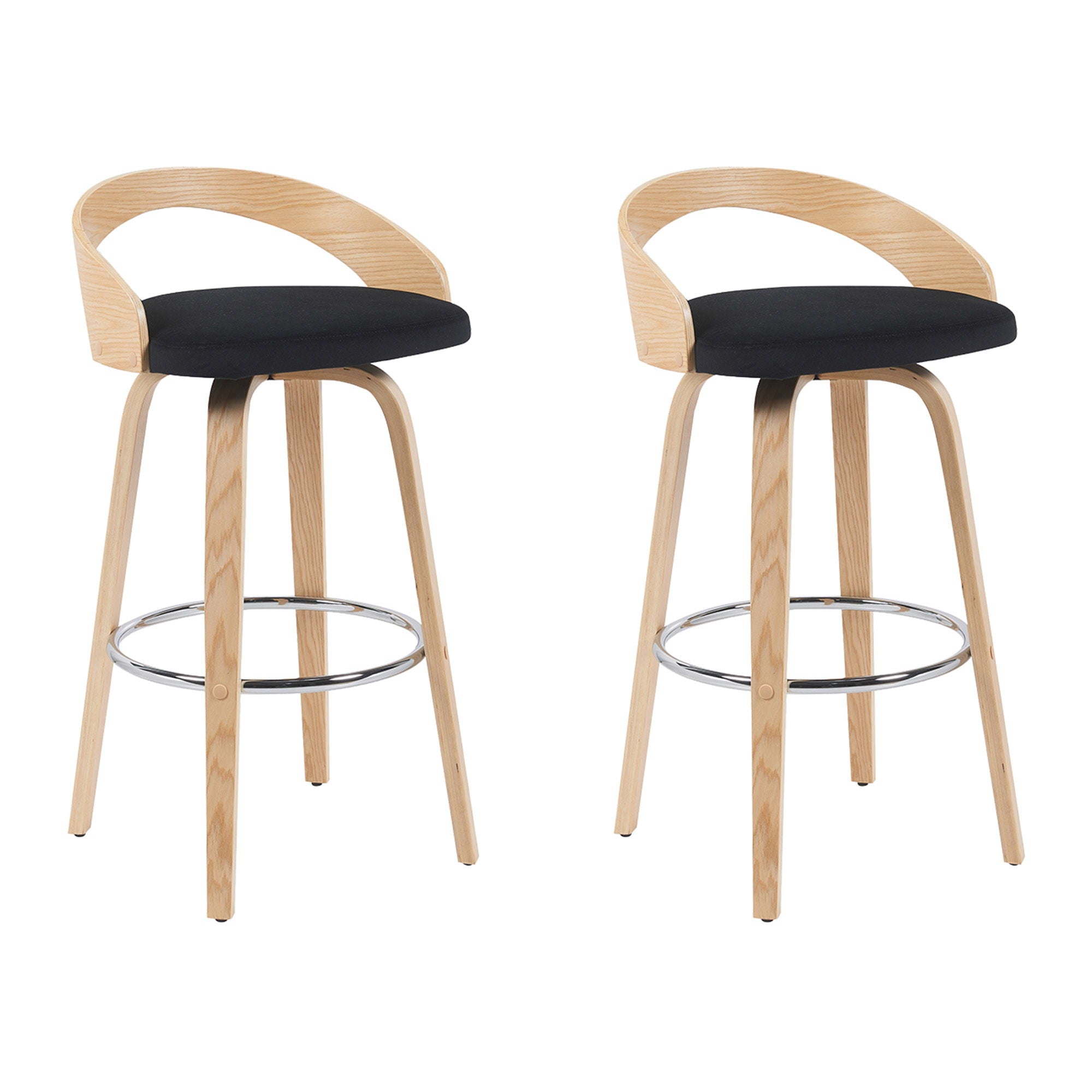 Sonia - Modern Swivel Bar Height Stool (Set of 2) - Black Upholstered Seat And Patterned Oak Wood Finish