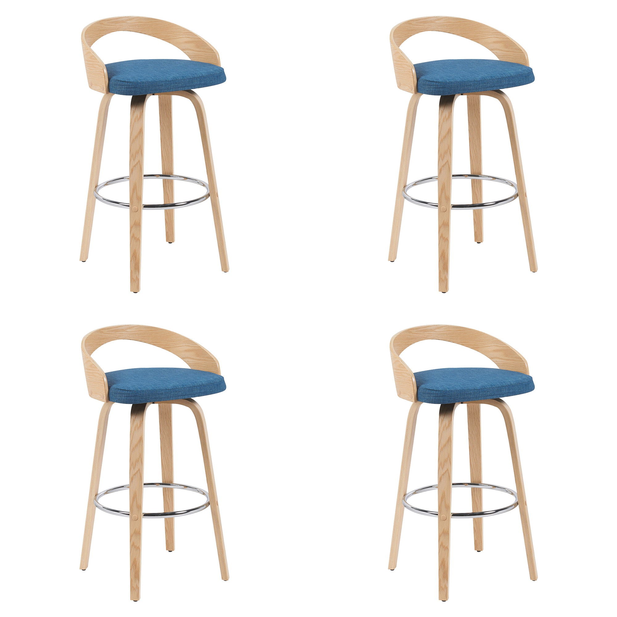 Sonia - Modern Swivel Bar Height Stool (Set of 4) - Blue Upholstered Seat And Patterned Oak Wood Finish