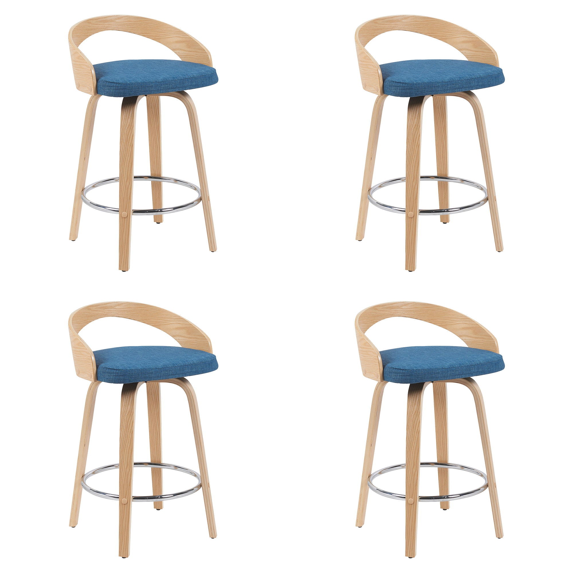 Sonia - Modern Swivel Counter Height Bar Stool (Set of 4) - Blue Upholstered Seat And Patterned Oak Wood Finish