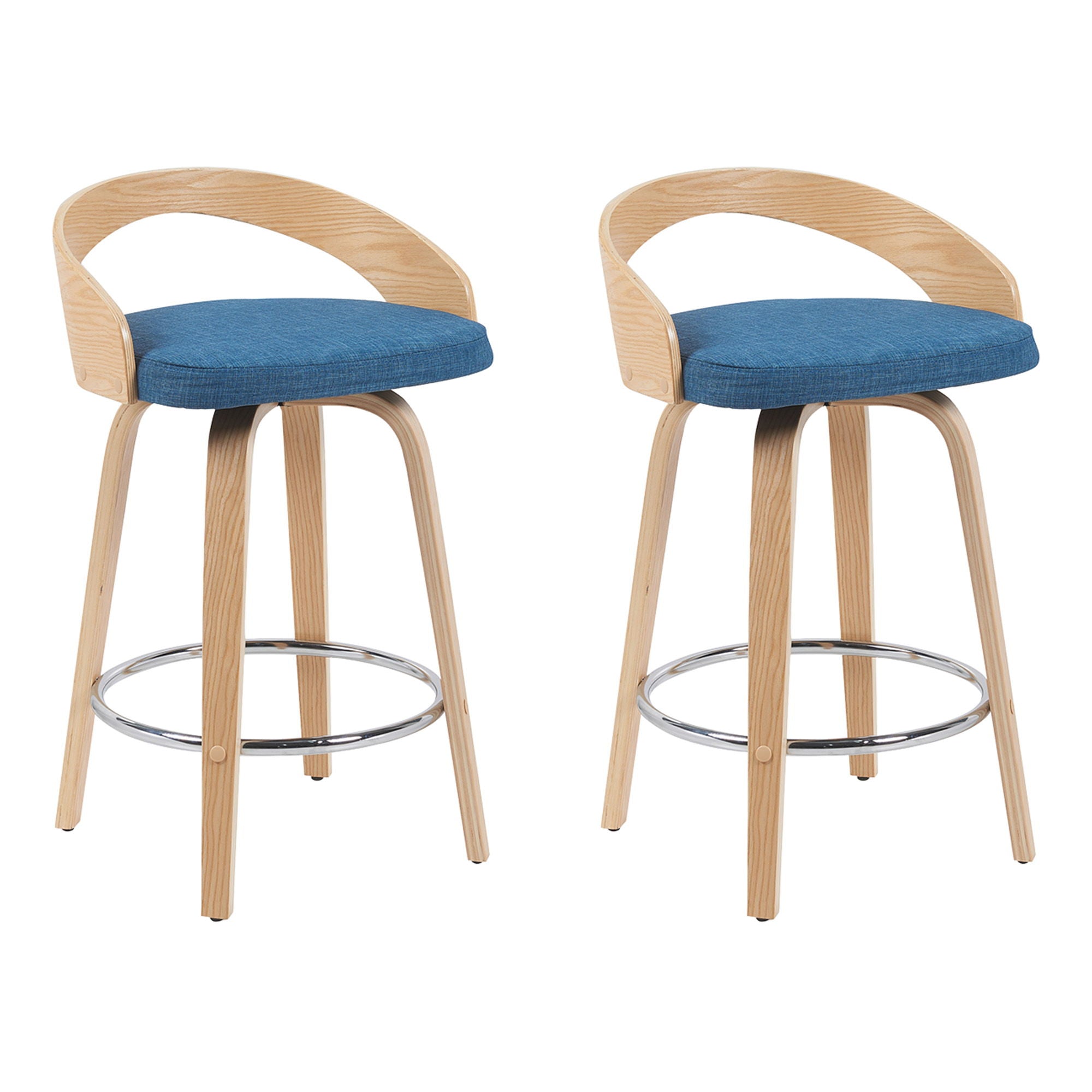 Sonia - Modern Swivel Counter Height Bar Stool (Set of 2) - Blue Upholstered Seat And Patterned Oak Wood Finish