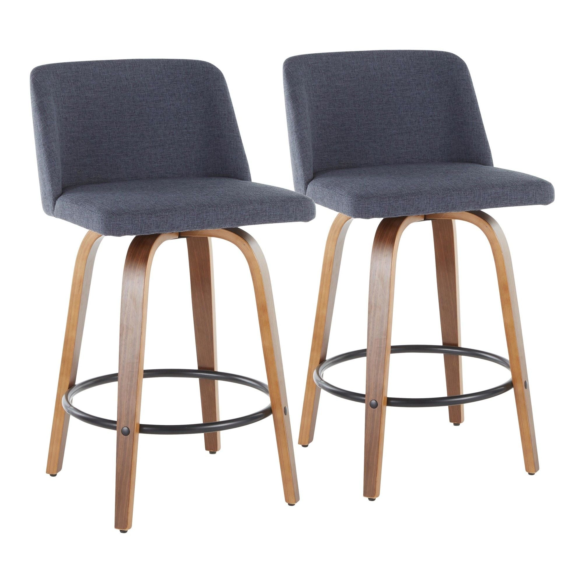 Toriano - Counter Stool - Walnut And Blue Fabric (Set of 2) - 35"
