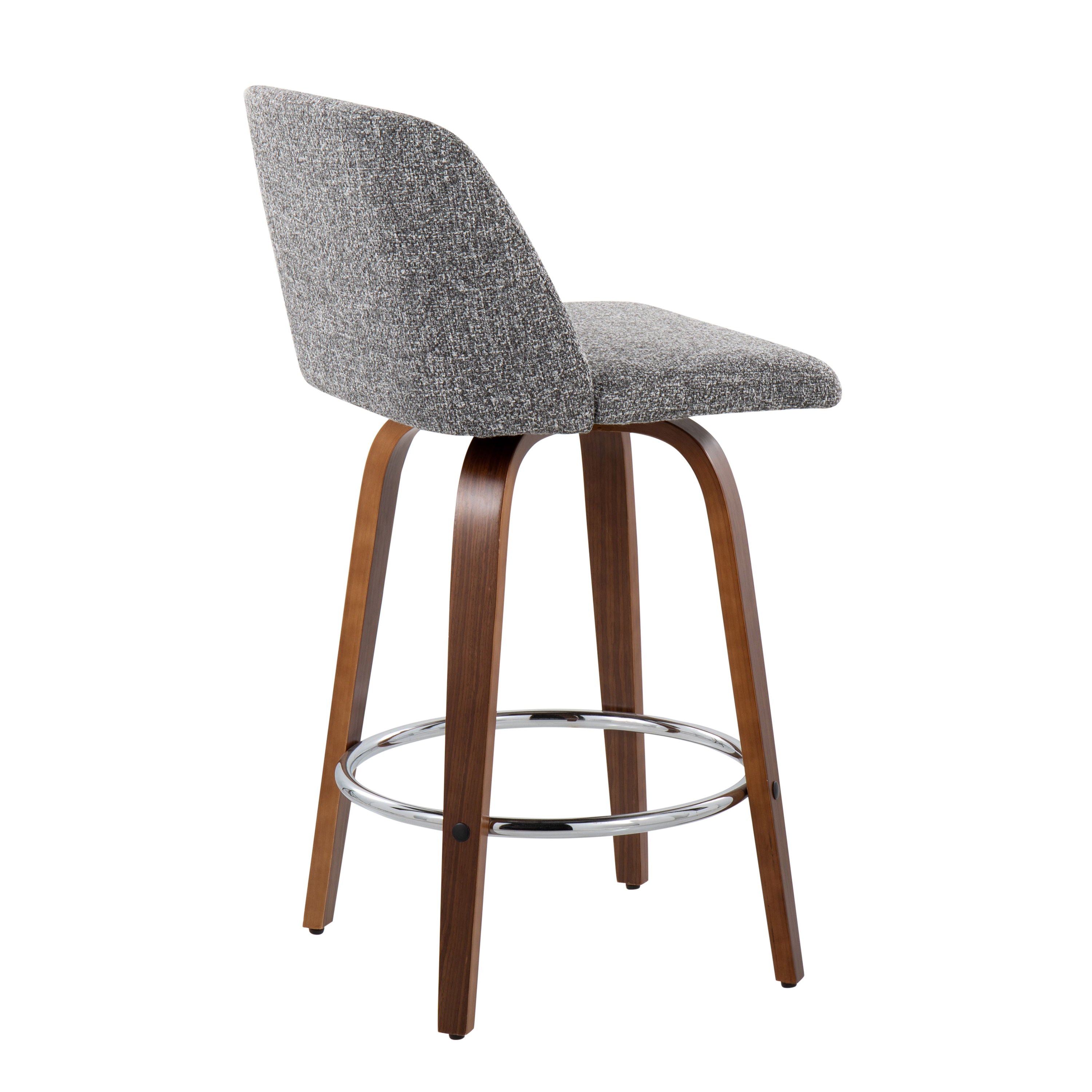 Toriano - Fixed - Height Counter Stool - Walnut Wood With Round Chrome Footrest And Gray Noise Fabric (Set of 2)