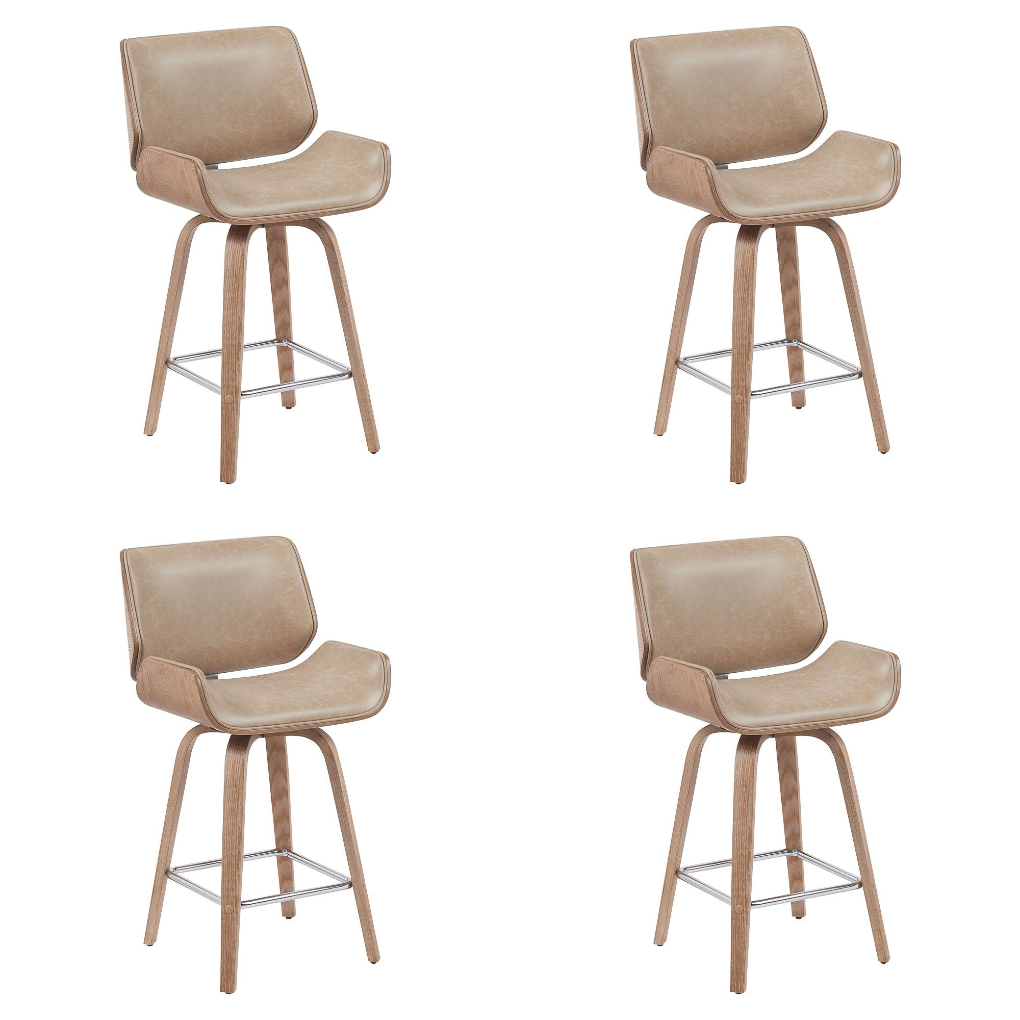 Tyler - 26" Counter Height Swivel Bar Stool (Set of 4) - Brown Faux Leather And Walnut Wood