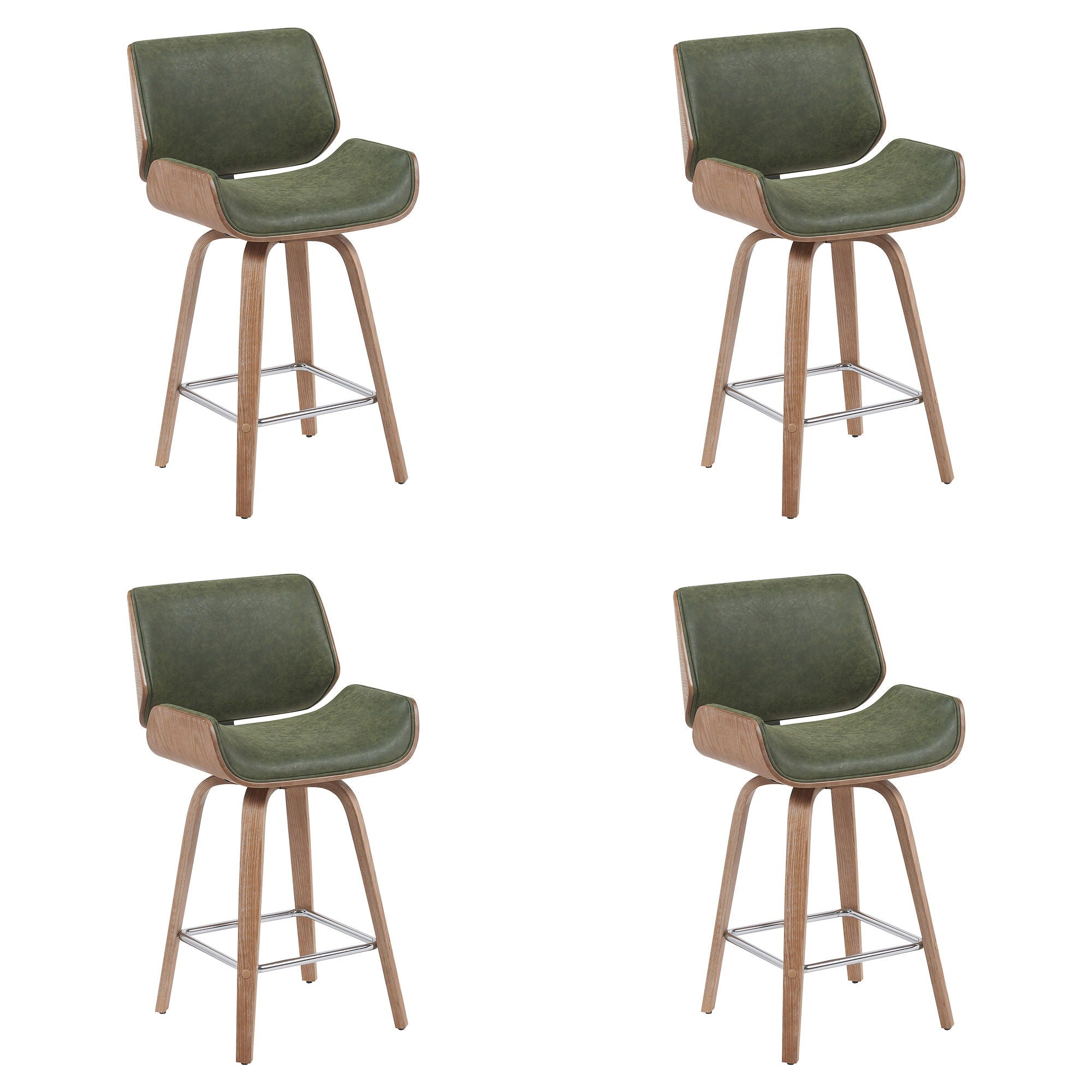 Tyler - Modern Counter Height Swivel Bar Stool (Set of 4) - White Wash Finished Wood And Vintage Green Upholstery