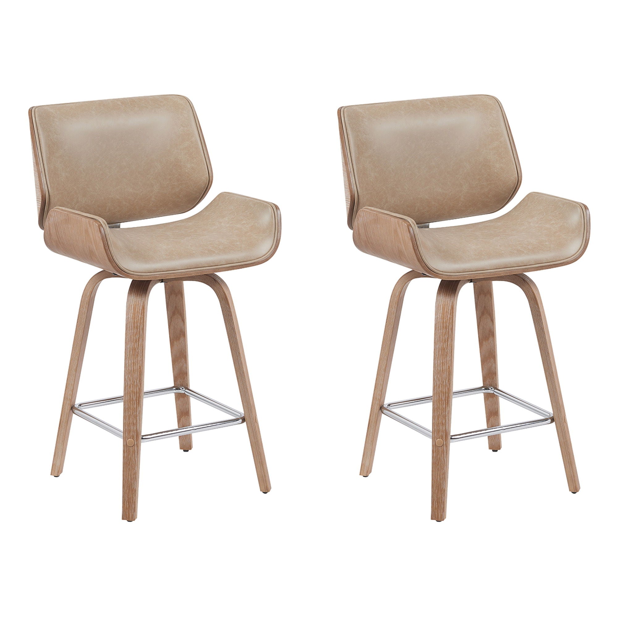 Tyler - 26" Counter Height Swivel Bar Stool (Set of 2) - Brown Faux Leather And Walnut Wood