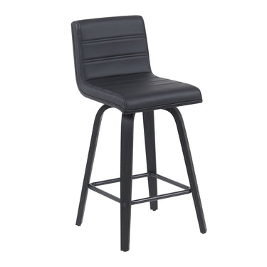 Elevate your kitchen, bar, or dining area with the Vienna Swivel Stool Collection — a modern essential that combines mid-century charm with functional comfort. Designed for daily use and entertaining alike, Vienna’s 360-degree swivel and armless frame provide effortless movement and easy conversation flow. The gently curved backrest supports posture alignment while keeping the profile sleek and space-saving. The Vienna stool is built on a strong wood frame with four splayed legs and a square steel footrest for added durability and a clean, modern edge. The seat and backrest are generously padded with high-density foam and finished in your choice of smooth vegan leather or performance fabric for elevated comfort and easy maintenance. Originally offered in a walnut finish with cream, brown, or gray vegan leather, and a black brushed finish with gray vegan leather, the collection now features even more design-forward combinations. Explore updated variants including snow white vegan leather with walnut, black brushed, or patterned oak finishes; vintage-inspired blue, green, and black tones paired with walnut finish frames; and bold red or soft gray performance fabrics on brushed or patterned wood finishes. Available in both counter height and bar height, Vienna offers a versatile range of styles to suit your space. With its timeless look and enduring quality, this collection brings warmth, elegance, and comfort to any interior.